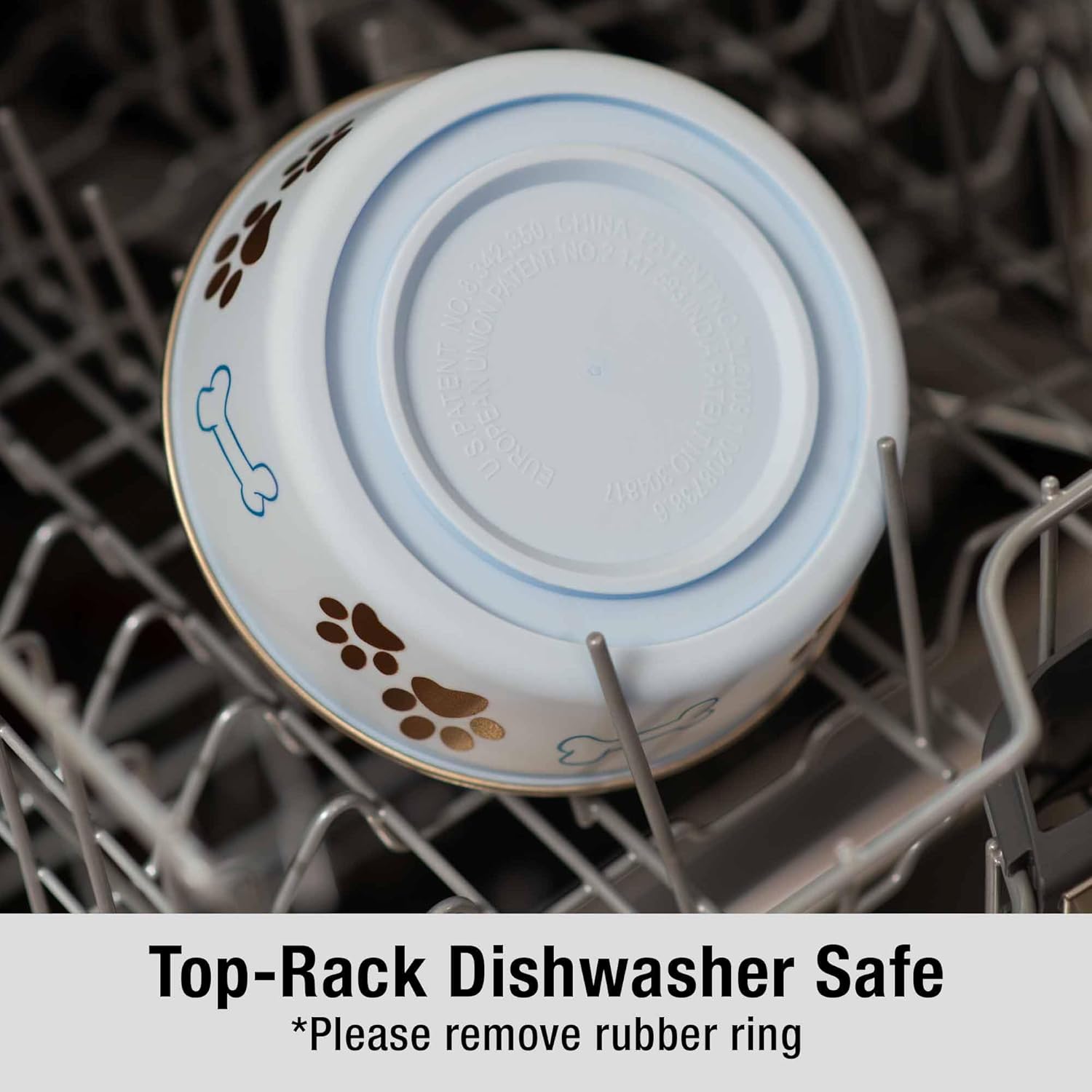 - Removable rubber base prevents skids, spill and noise