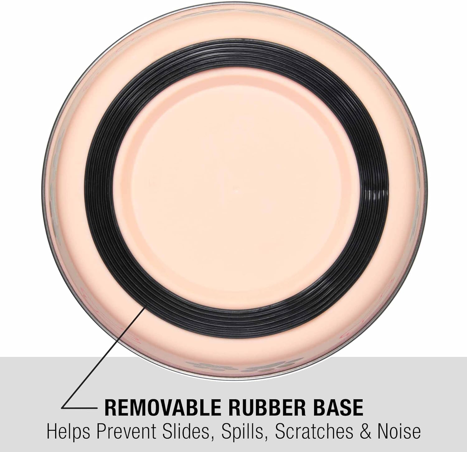 - REMOVEABLE RUBBER BASE - This feature prevents and ensures no spill water bowl for dogs. Itβs perfect for puppy food and makes an excellent addition to your dog feeding station. Watch the bowl stand steady on your pet food mat, making it a great complement to your dog mat and other dog stuff.