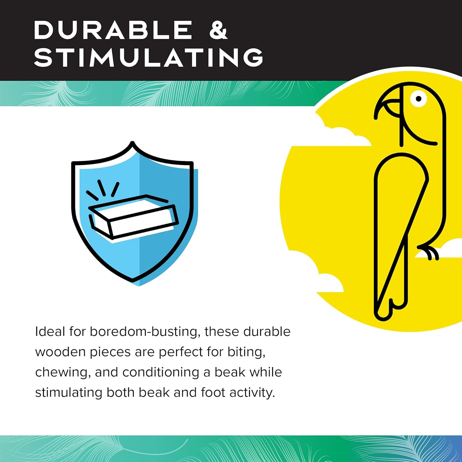 - STIMULATING: Ideal for boredom busting, wooden pieces of these large bird toys are great for biting, chewing, and conditioning a beak while stimulating both beak and foot activity