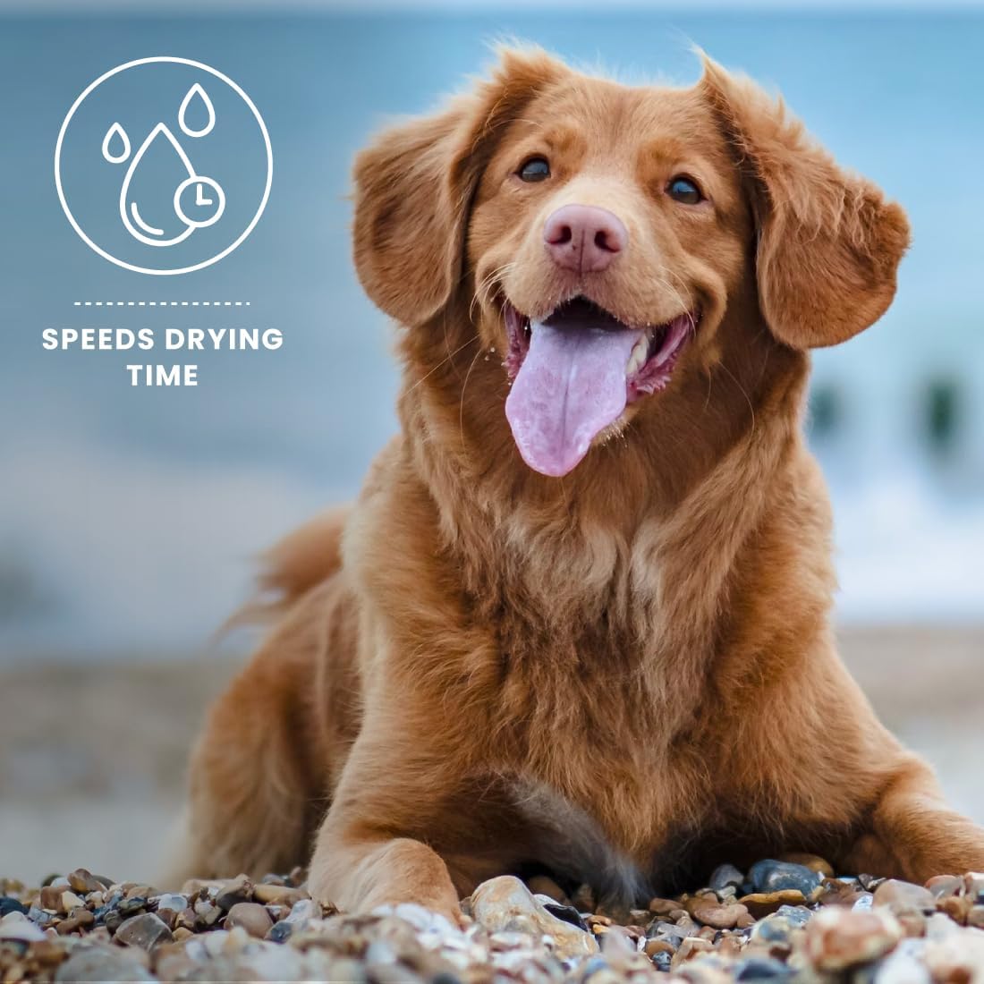 - Finishing Spray: Our refreshing pet grooming spray hydrates your petβs coat, soothes their skin, and eliminates static effectively. Apply it after washing your dog's coat, as the spray speeds up the drying time and makes detangling effortless.