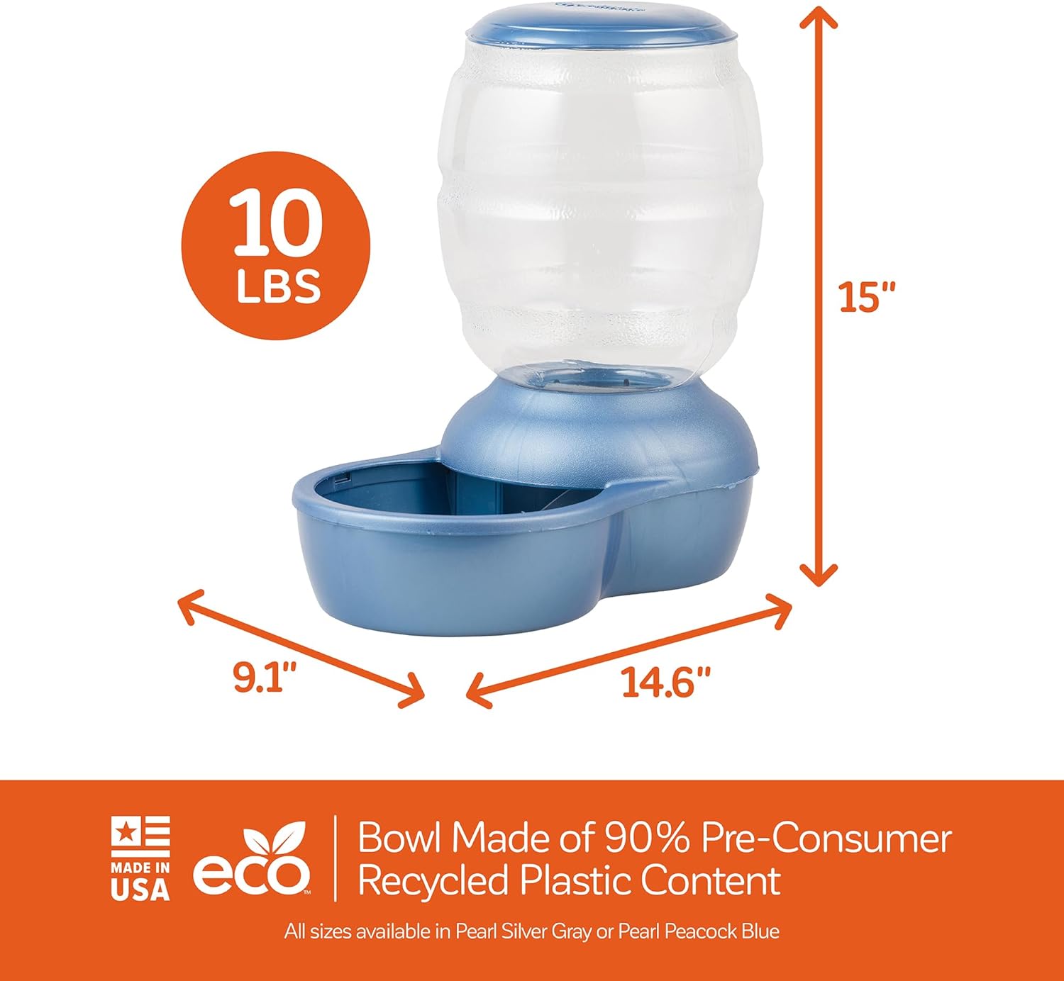 Petmate Replendish Feeder Automatic Cat and Dog Feeder, Pearl Peacock Blue, 10 LB, Made in USA