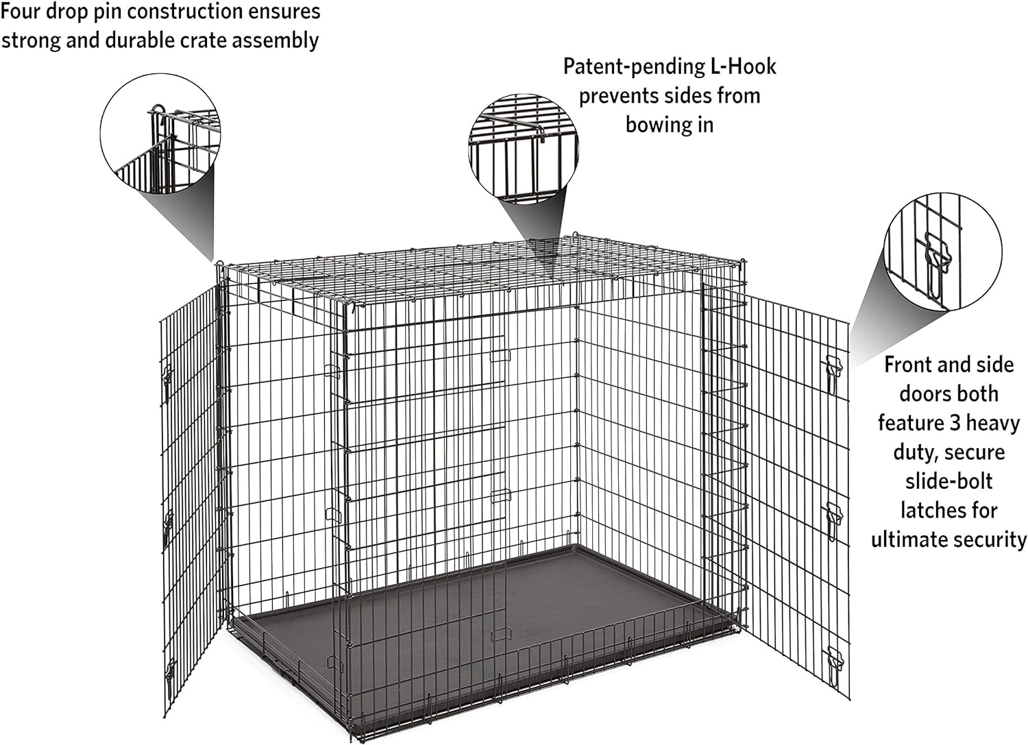 MidWest Homes for Pets Solutions Series XXL Double Door 54-Inch Dog Crate for the Largest Breeds, Sturdy Drop Pin Assembly, Black E-Coated, SL54DD
