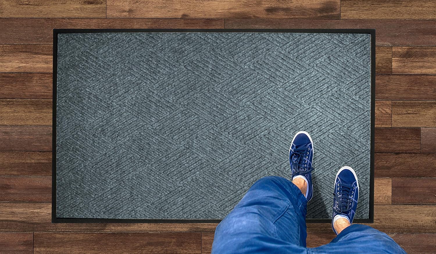 WaterHog Diamond | Commercial-Grade Entrance Mat with Rubber Border – Indoor/Outdoor, Quick Drying, Stain Resistant Door Mat (Bluestone, 3' x 8')