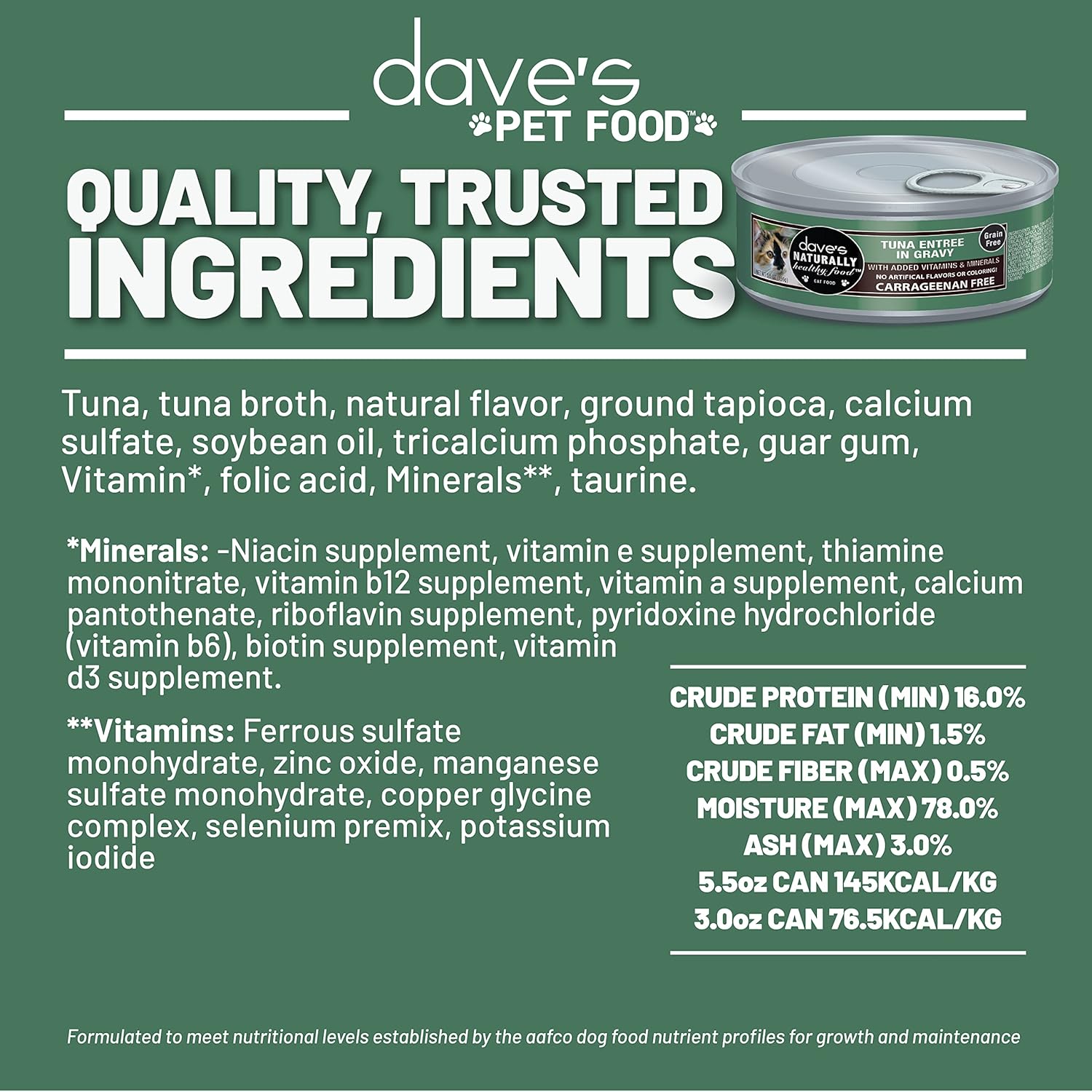 Dave's Pet Food Grain Free Wet Cat Food (Tuna Entree in Gravy), Naturally Healthy Canned, Added Vitamins & Minerals, 5.5 oz Cans (24 Pack)