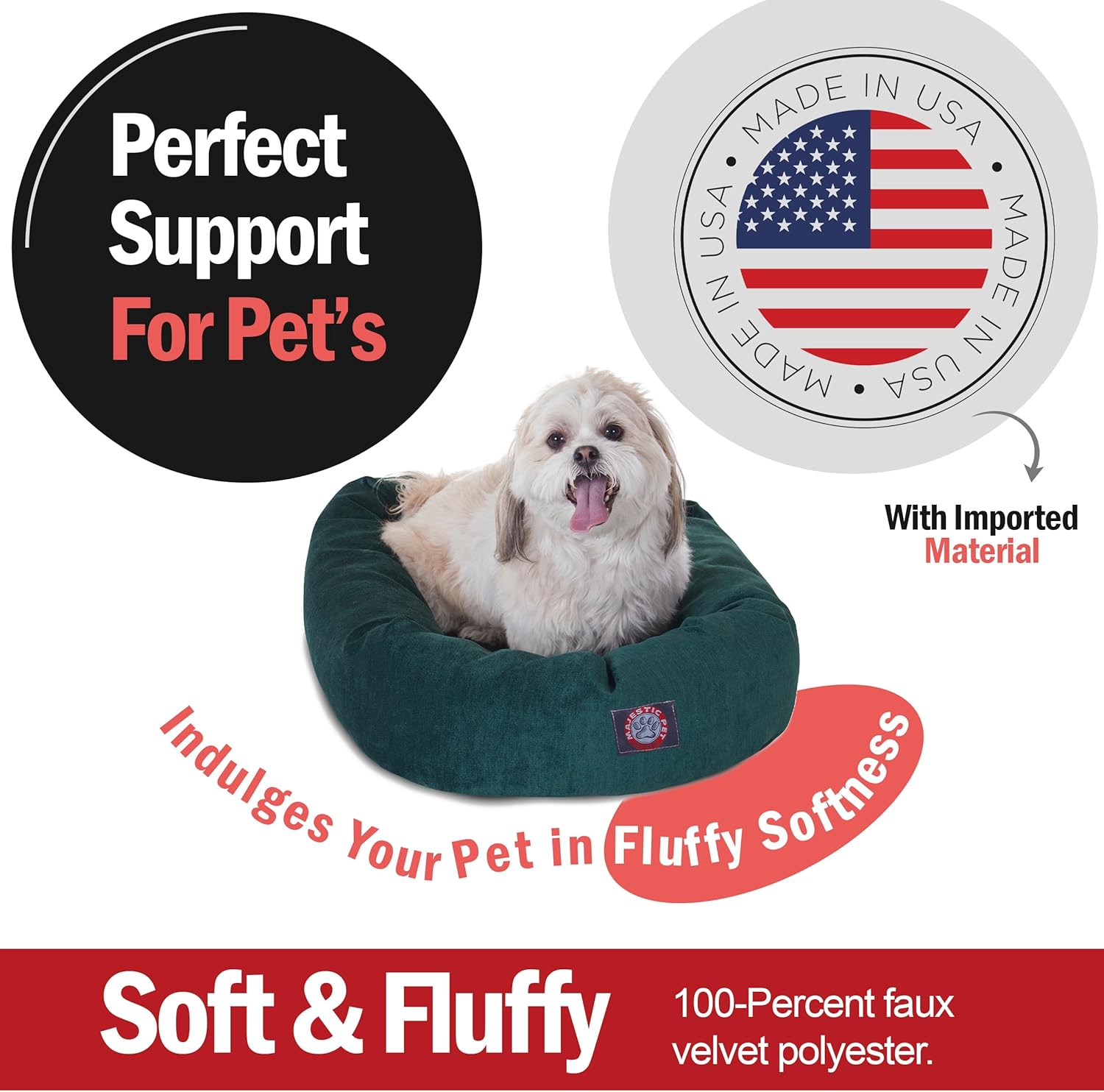 Majestic Pet 24 Inch Micro Velvet Calming Dog Bed Washable – Cozy Soft Round Dog Bed with Spine for Head Support - Fluffy Donut Dog Bed 24x19x7 (inch) – Round Pet Bed Small – Marine