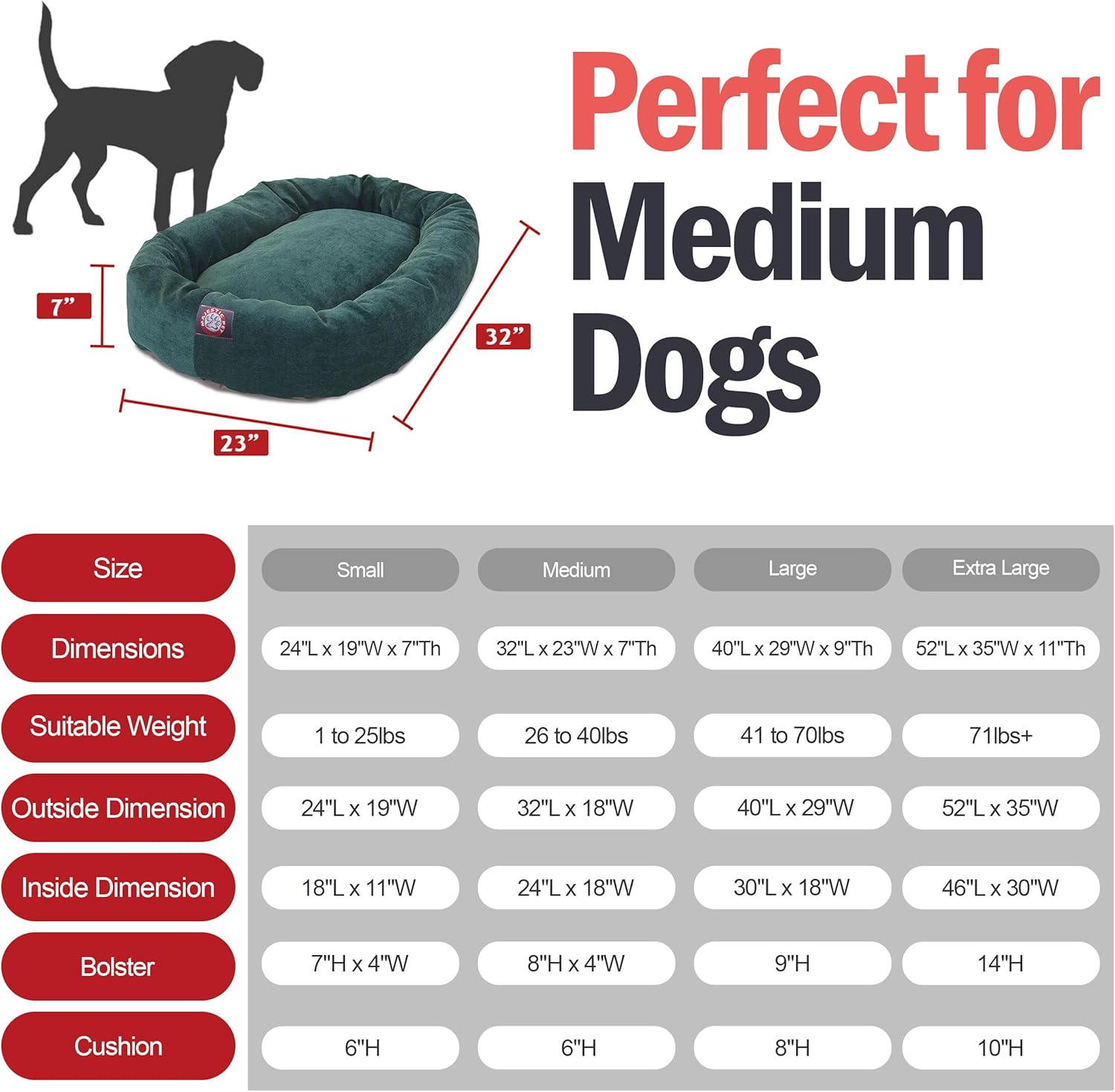 Majestic Pet 32 Inch Micro Velvet Calming Dog Bed Washable 32x23x7 (inch) – Cozy Soft Round Donut Dog Bed with Spine for Head Support - Pet Bed Medium – Marine