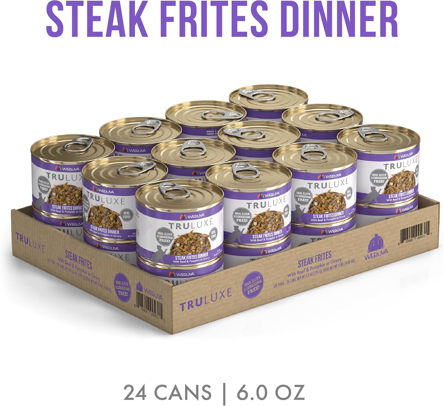 Weruva TruLuxe Cat Food, Steak Frites Dinner with Beef & Pumpkin in Gravy, 6oz Can (Pack of 24)