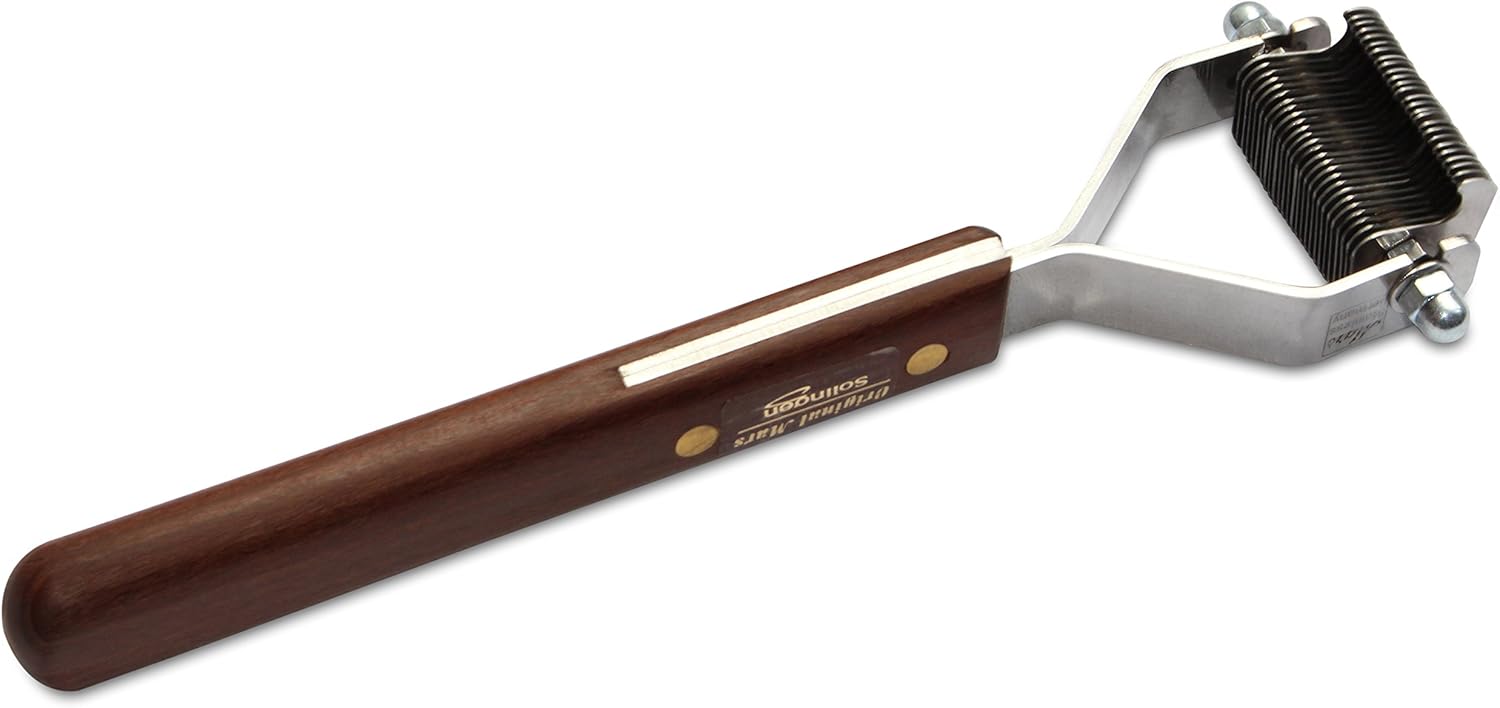 - RELIABLE DOG GROOMING TOOL: Made with stainless steel and a wooden handle for an easy grip, this pet rake stripper tool is perfect for deshedding and thinning your cat or dogβs coat.