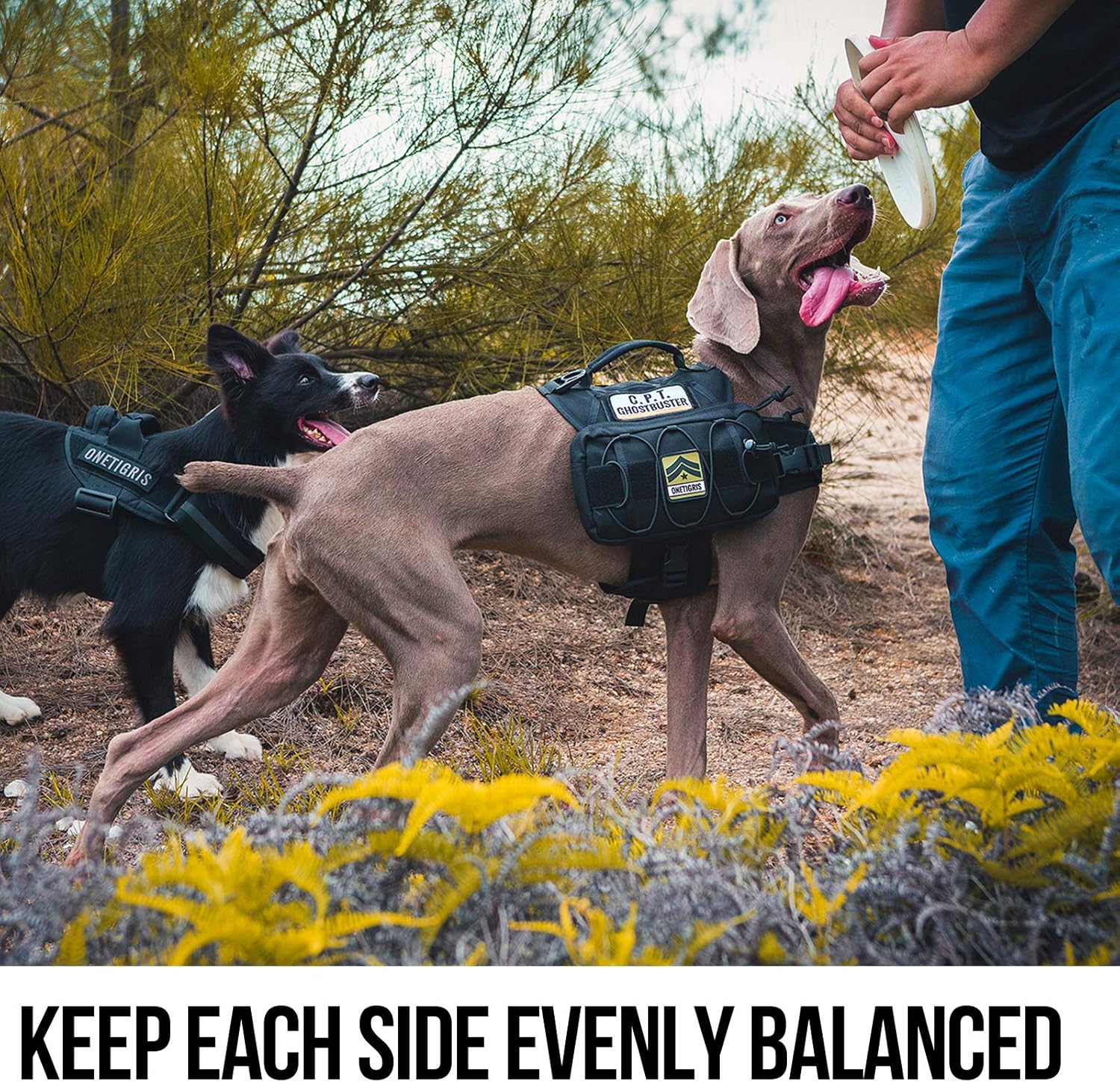 OneTigris Dog Backpack for Medium & Large Dogs, Nylon Backpack for Dogs Tactical Pet Backpack with Side Pockets for Hiking Walking Training Running (Black, Medium)