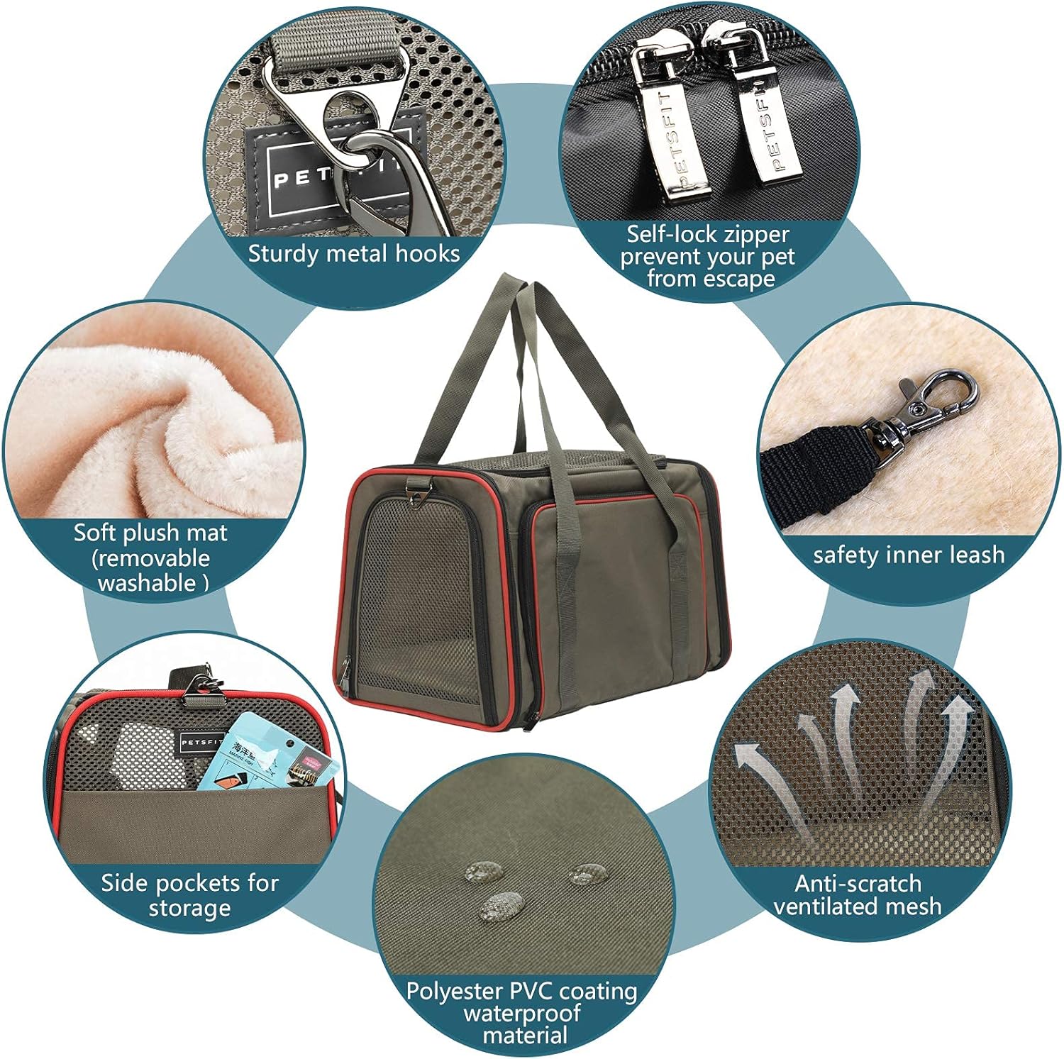 - 【MULTIPLE WAYS TO CARRY 】Self-lock zipper to prevent your pets from escaping. A strap on one side can be slid around the extendable handle of rolling luggage. Two flexible handles to hold with your hands. Additionally, it provides a longer, detachable strap to hang on the shoulders and has a side pocket for storage.