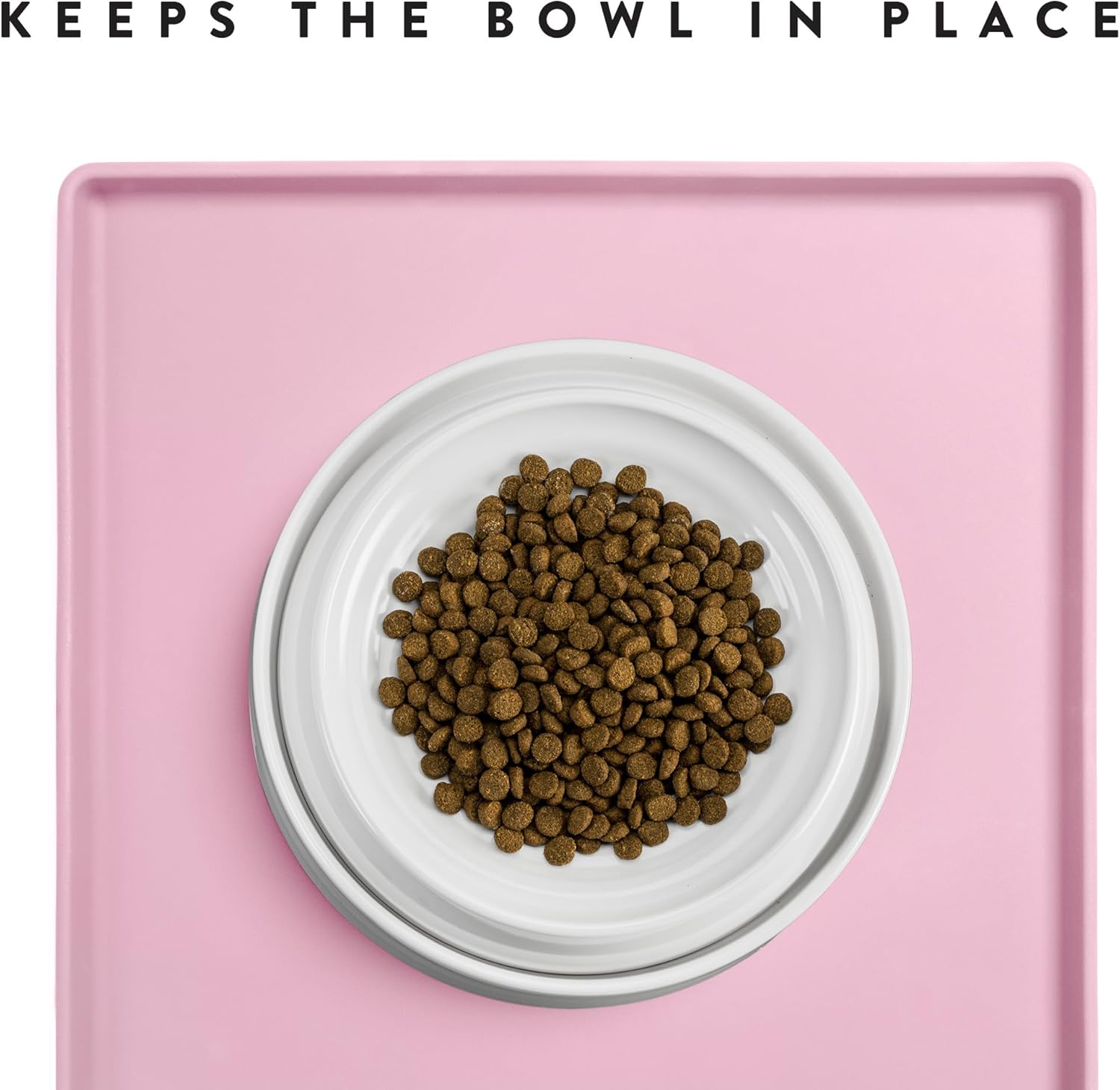 CatGuru Cat Food Mat, Small & Large Pet Feedingd Mat, 100% Waterproof Cat Mats for Food and Water, Silicone Mats for Pet Bowls, Non-Slip Placemat for Water Bowl or Fountain (Small, Pink)