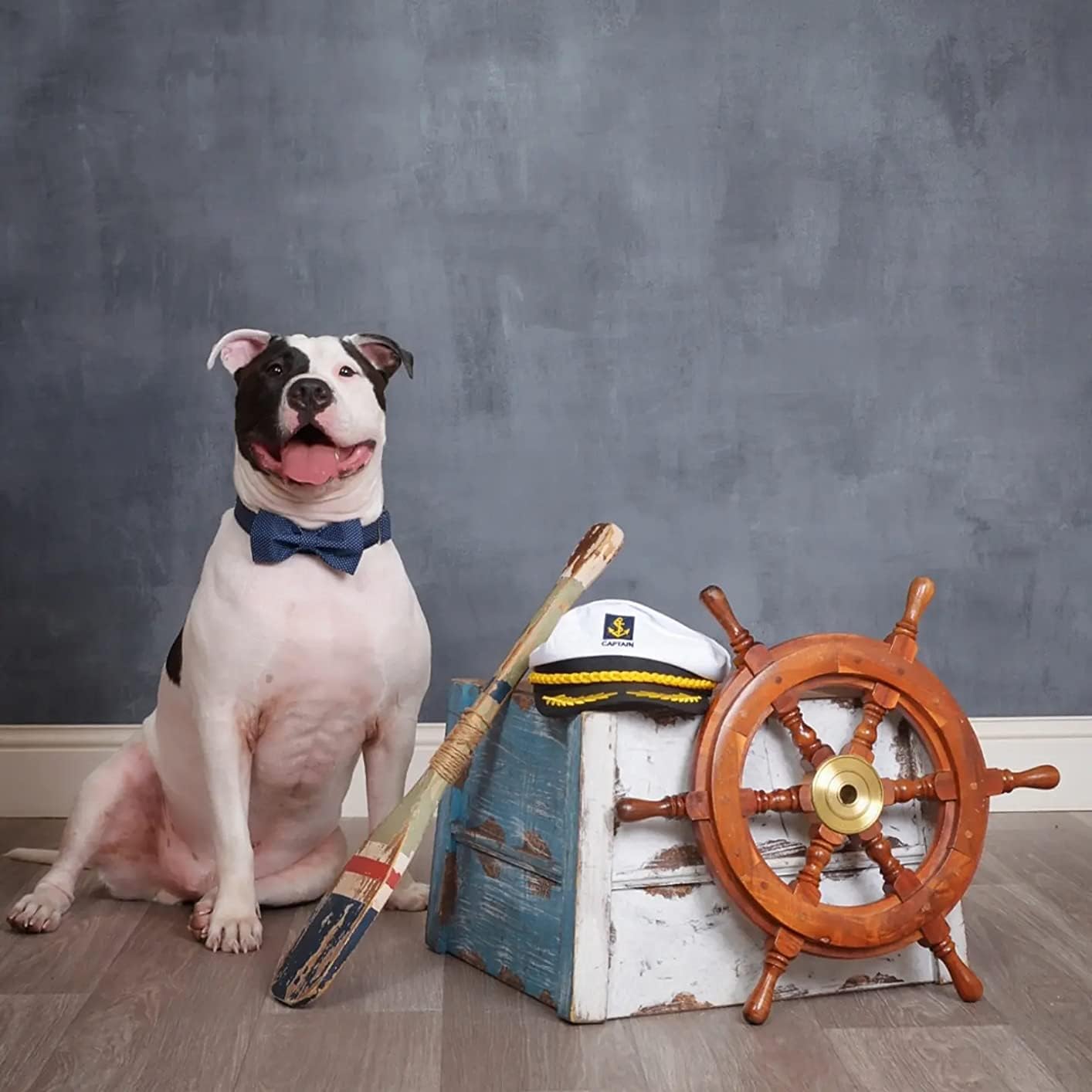 Lionet Paws Boy Dog Collar with Bowtie, Comfortable Adjustable Cute Navy Blue Bow Tie Collar for Male Dogs Gift, XLarge, Neck 16-26 inches
