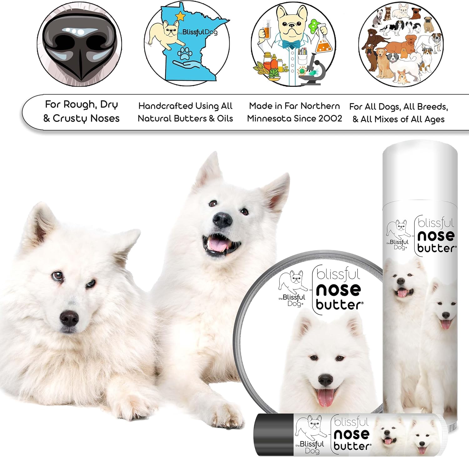 The Blissful Dog Samoyed Nose Butter for Dry, Cracked Skin, Lick-Safe Dog Nose Balm with Moisturizing Shea Butter, Almond, Olive, and Essential Oils, Pet Supplies, Uncented, 1 oz.