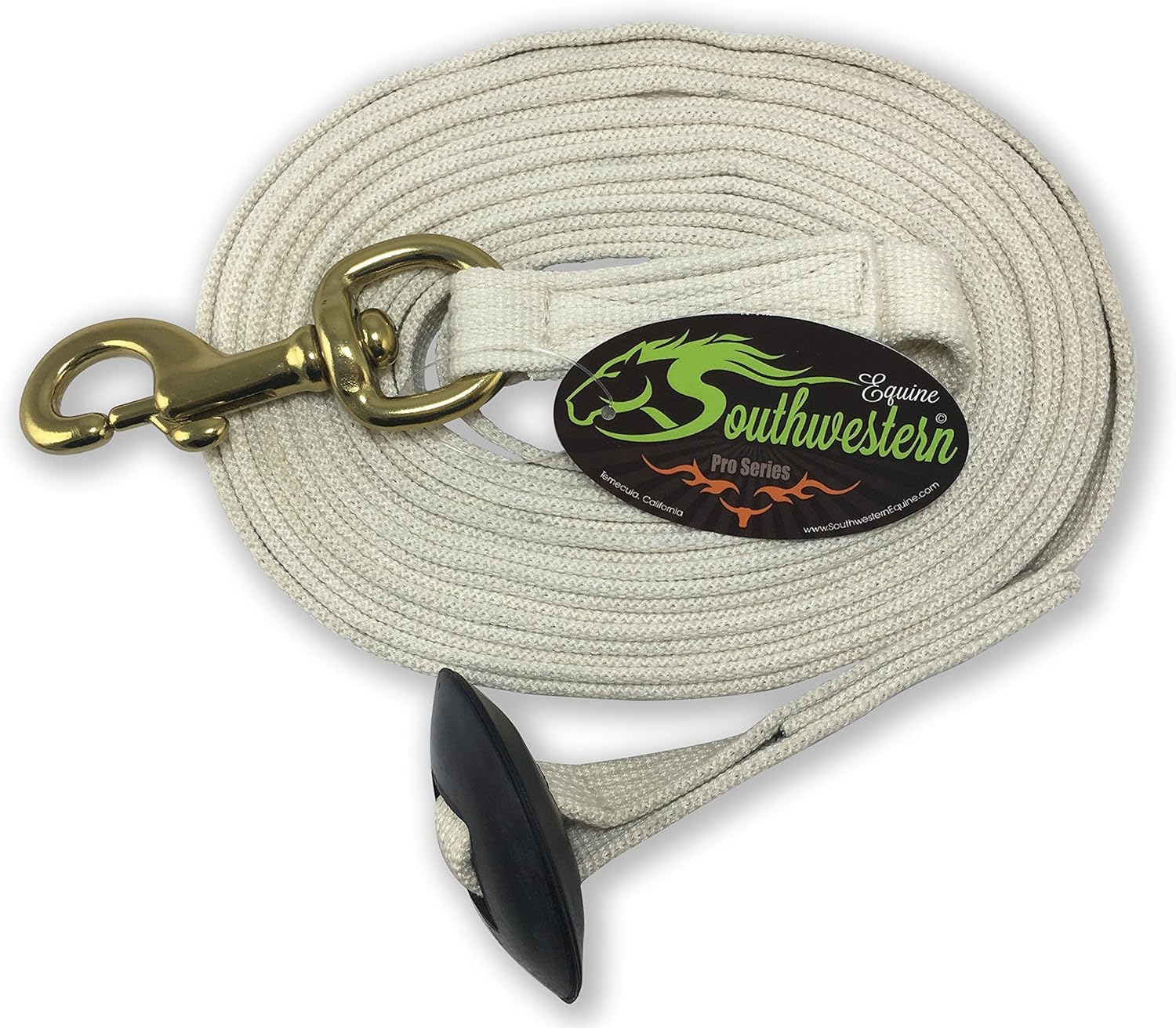 - RUBBER STOP - Don't ever be faced with your horse getting a little frisky and flipping that rope out of your hand. Our cotton lunge line has a rubber stop to help you have more grip and stop the rope from sliding all the way out of your hand.