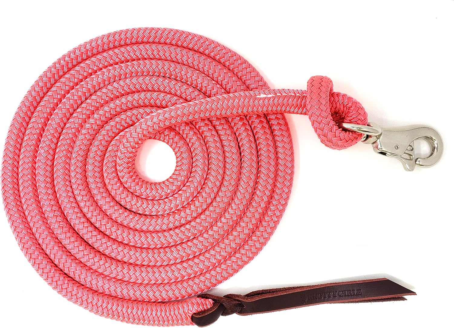 Premium 1/2" Samson EQ Yacht Braid Lead Rope with Nickel Trigger Bull Snap. Option for 12ft, 14ft and 16ft Lengths (Pink, 12 FT)