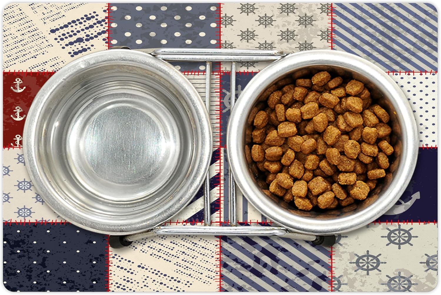 Lunarable Nautical Pet Mat for Food and Water, Maritime and Nautical Life Design with Vintage Sailor Knot Anchor Motifs, Non-Slip Rubber Mat for Dogs and Cats, 18" X 12", Vermilion Blue