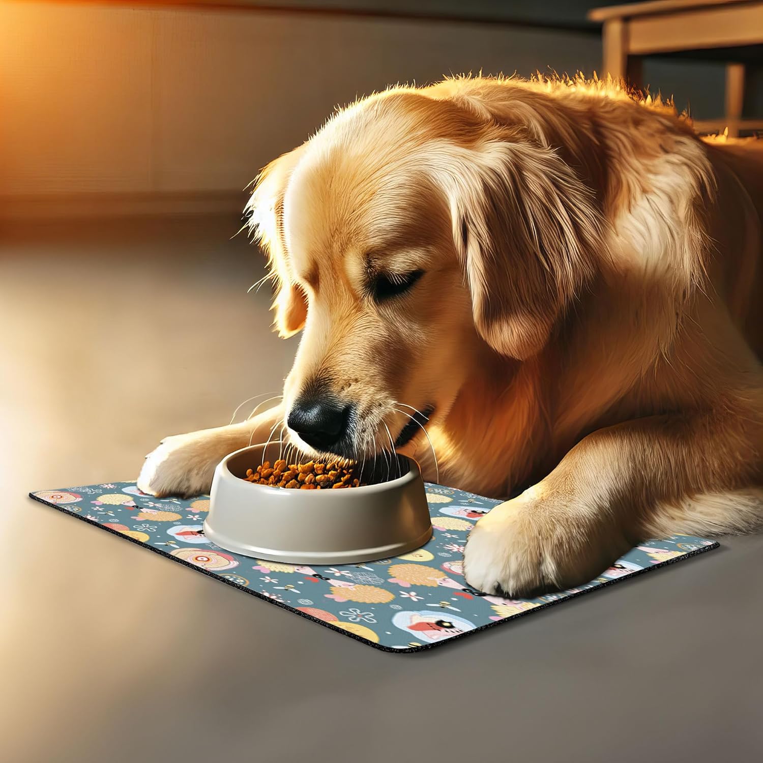 - Features - Fun prints and long-lasting colors. Find any theme and color you want to match your room decor or your petβs personality. This pet feeding mat can even feature your cat's or dogβs favorite item or design, adding a cheerful touch to your petβs feeding area.