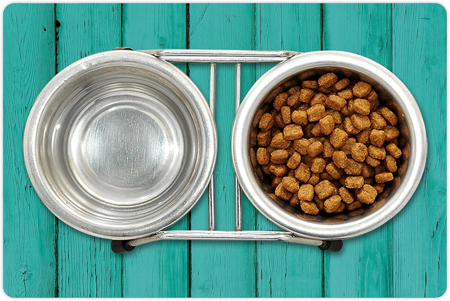 Lunarable Mint Pet Mat for Food and Water, Old Wood Rustic Oak Plank Background with Vertical Striped Vivid Woods Farm Barn Image, Non-Slip Rubber Mat for Dogs and Cats, 18" X 12", Green