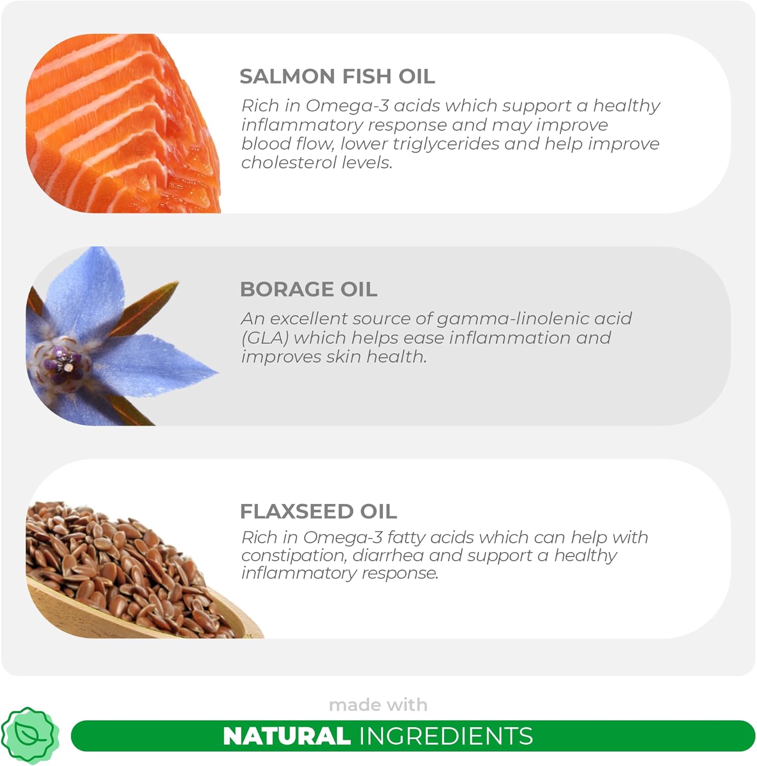 - Immune System - Our natural formula contains Vitamin E which is a powerful antioxidant that supports and enhances your dogβs immune system while also having Borage Oil which has anti-inflammatory properties.
