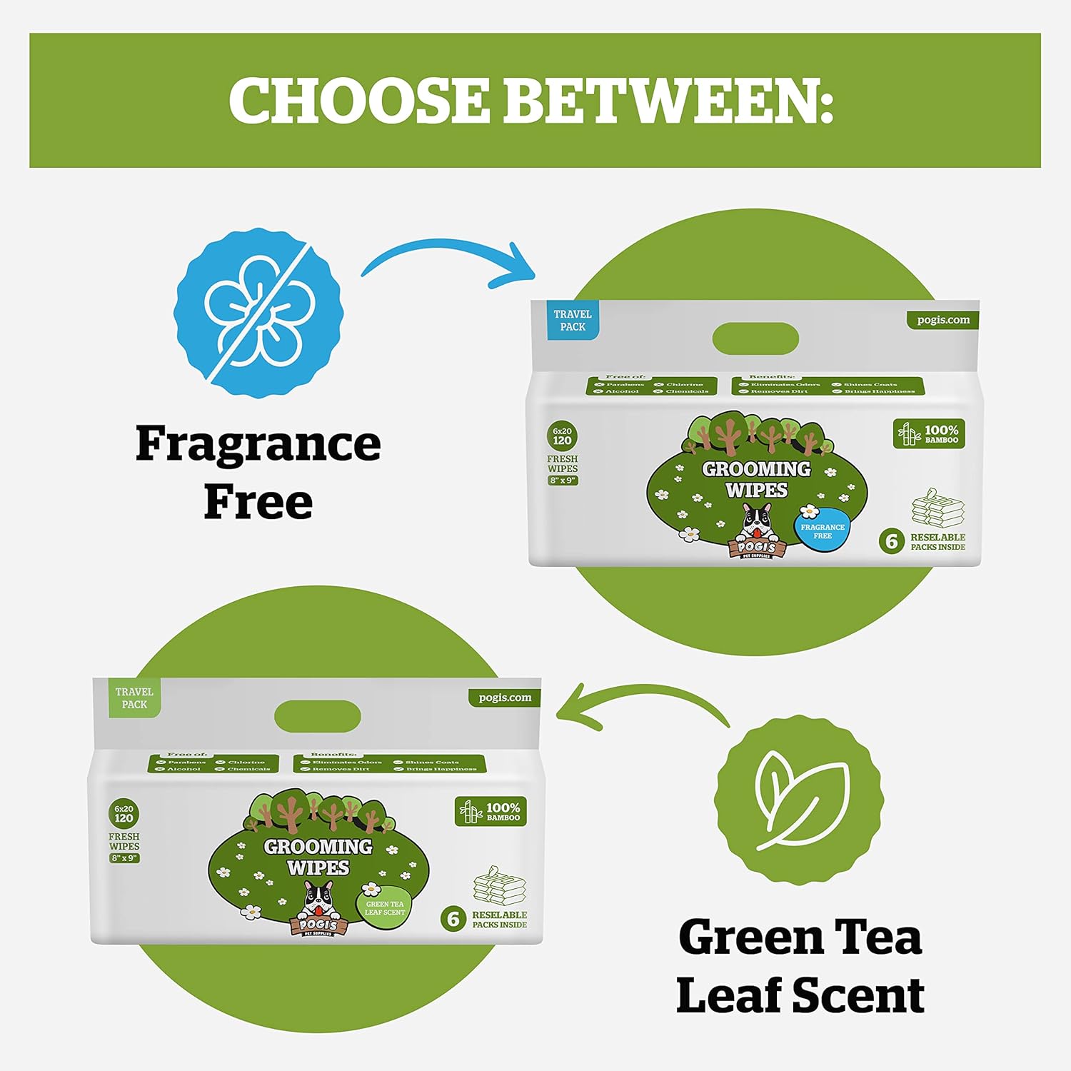 Pogi’s Dog Wipes Travel Packs – Hypoallergenic Pet Wipes for Paws, Body & Butt – Cleaning & Hydrating, Fragrance Free, 120-Count