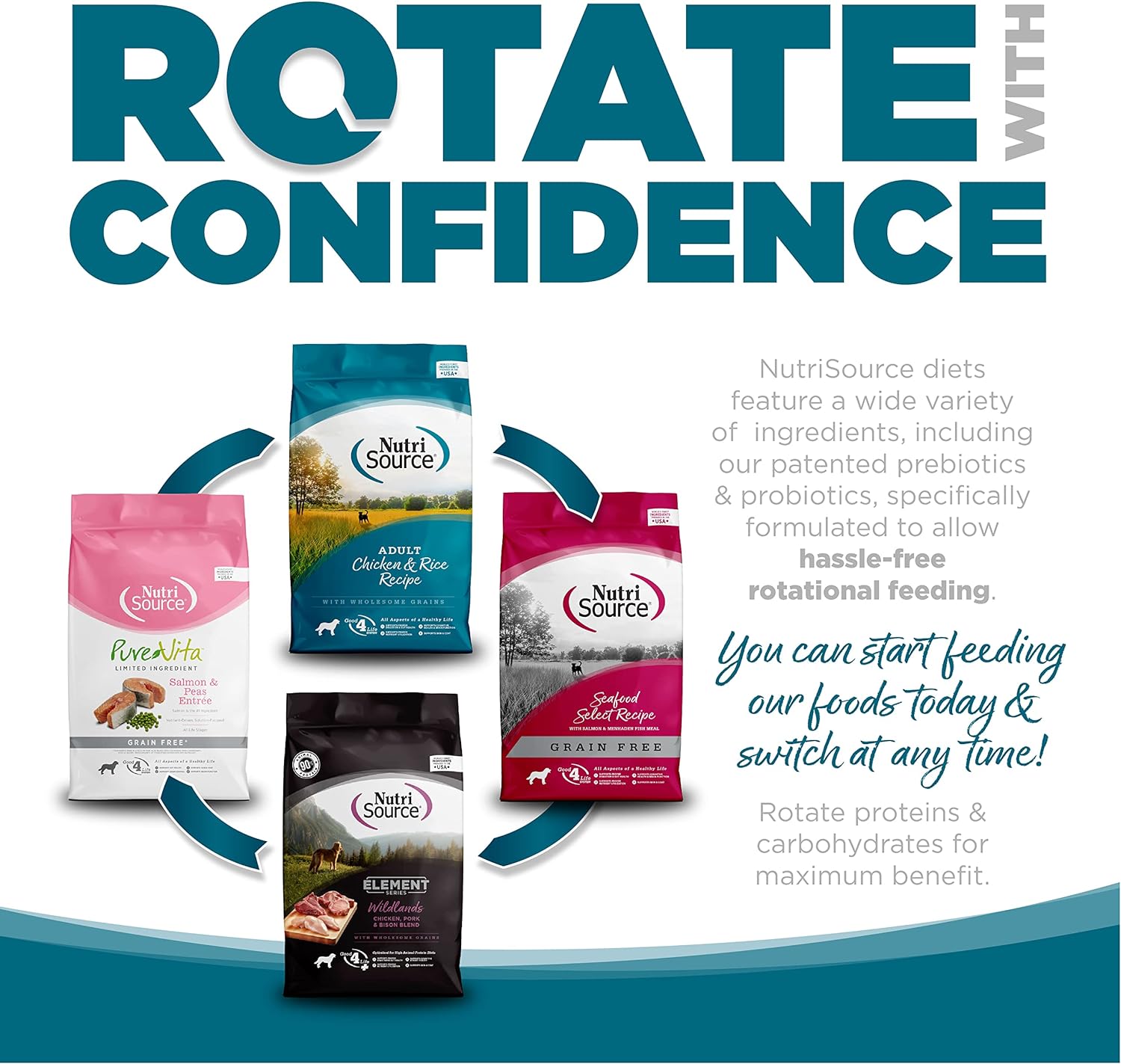 NutriSource Adult Dog Food, Made with Chicken and Rice, with Wholesome Grains, 15LB, Dry Dog Food