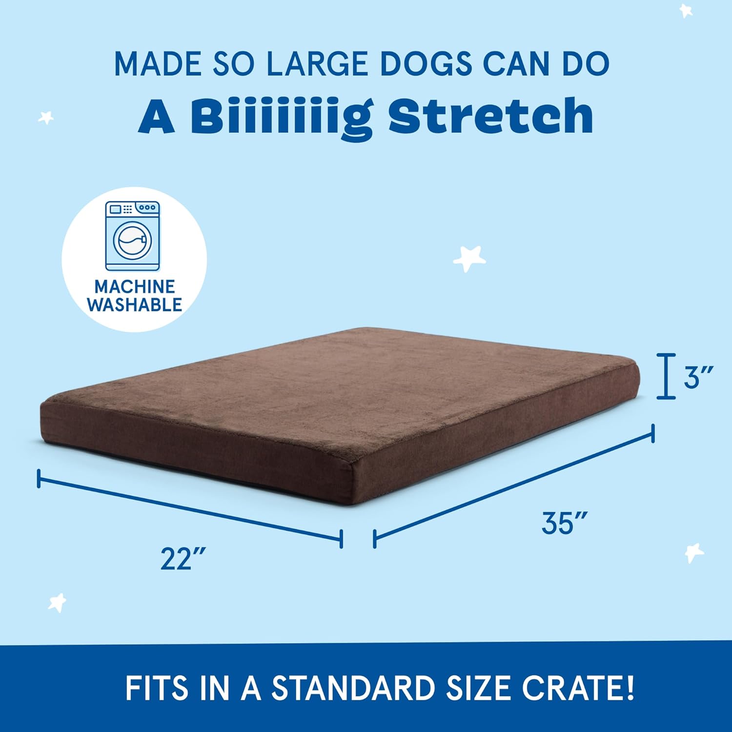- Ideal for All Sizes: Available in small, medium, large and extra large sizes, this large dog bed at 35" x 22" x 3", suits a variety of breeds. Whether you need an dog bed for a crate or an water resistant dog bed, our orthopedic dog bed meets your requirements.