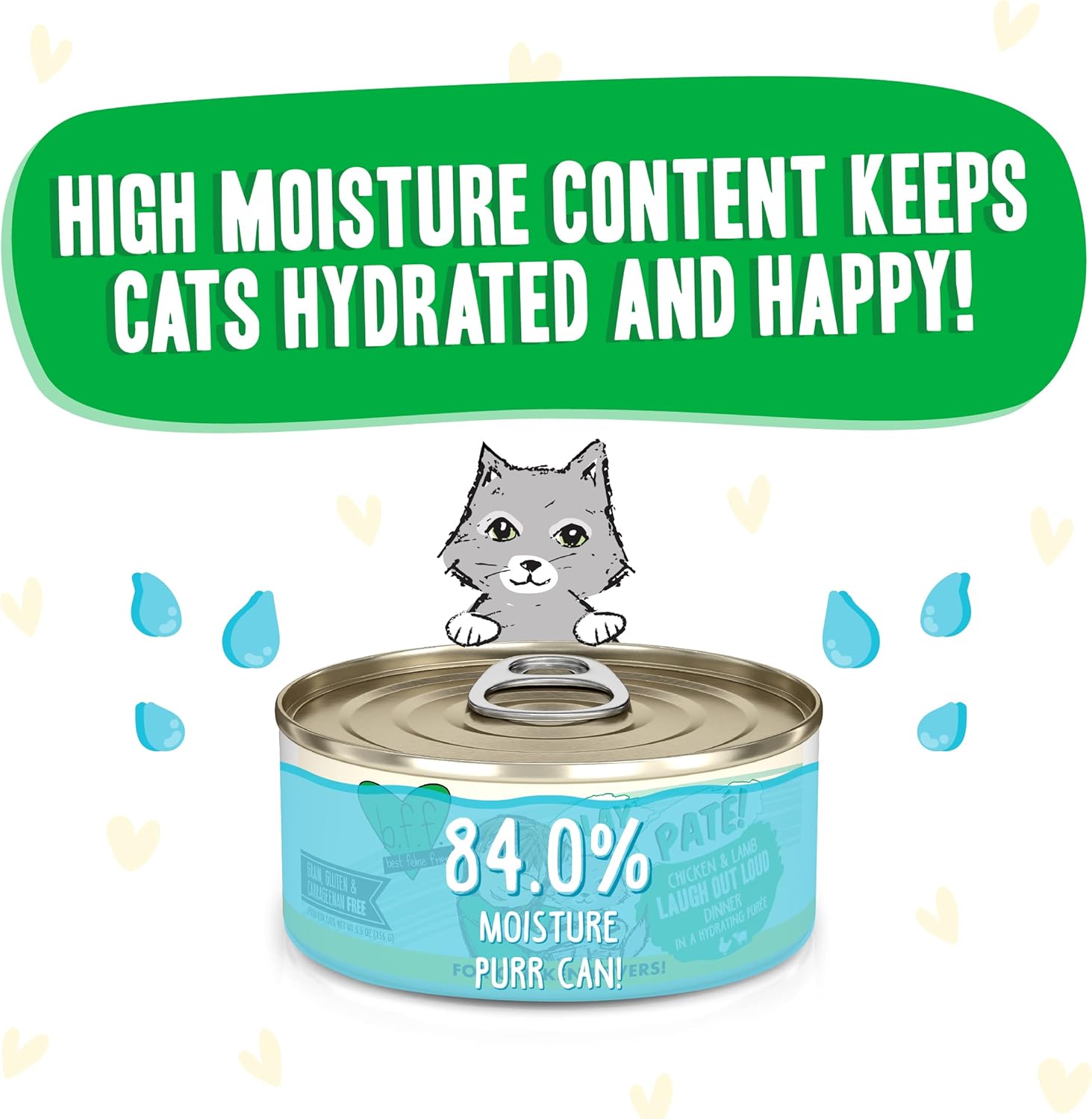 Weruva B.F.F. Play - Best Feline Friend Paté Lovers, Aw Yeah!, Chicken & Lamb Laugh Out Loud with Chicken & Lamb, 5.5oz Can (Pack of 8)