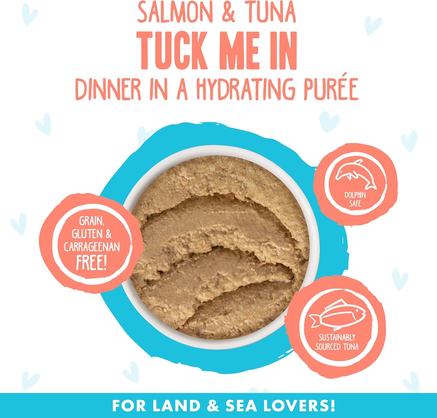 - Salmon & Tuna Tuck Me In (5.5oz Can, Pack of 8) Wild-caught salmon and red-meat tuna gently pureed into a creamy and delicious paté!