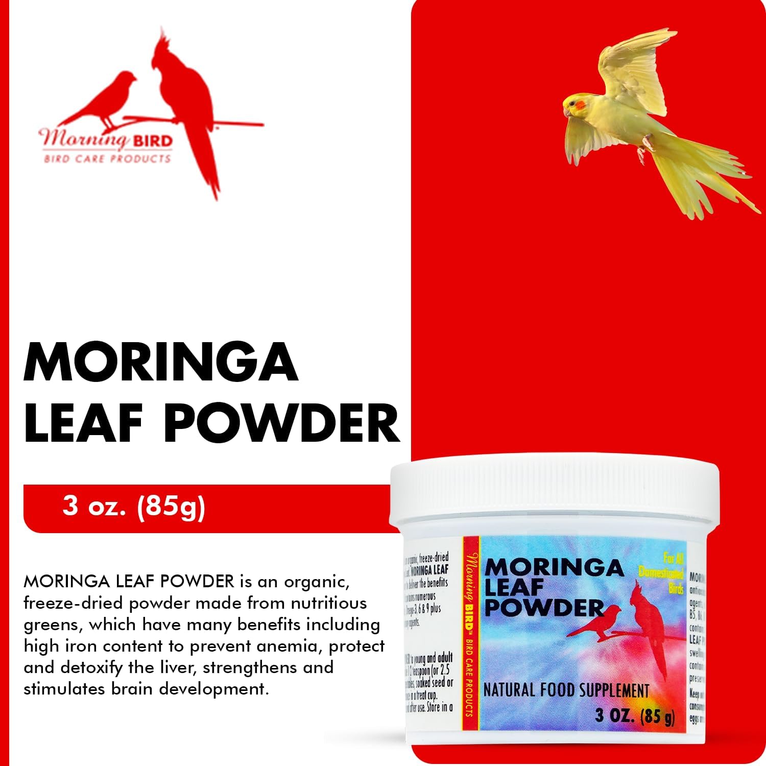 Morning Bird Moringa Leaf Powder 3 oz – Natural Food Supplement for Birds, Rich in Vitamins & Minerals, Boosts Immune System & Energy, Supports Healthy Feathers, Digestion, and Overall Avian Wellness