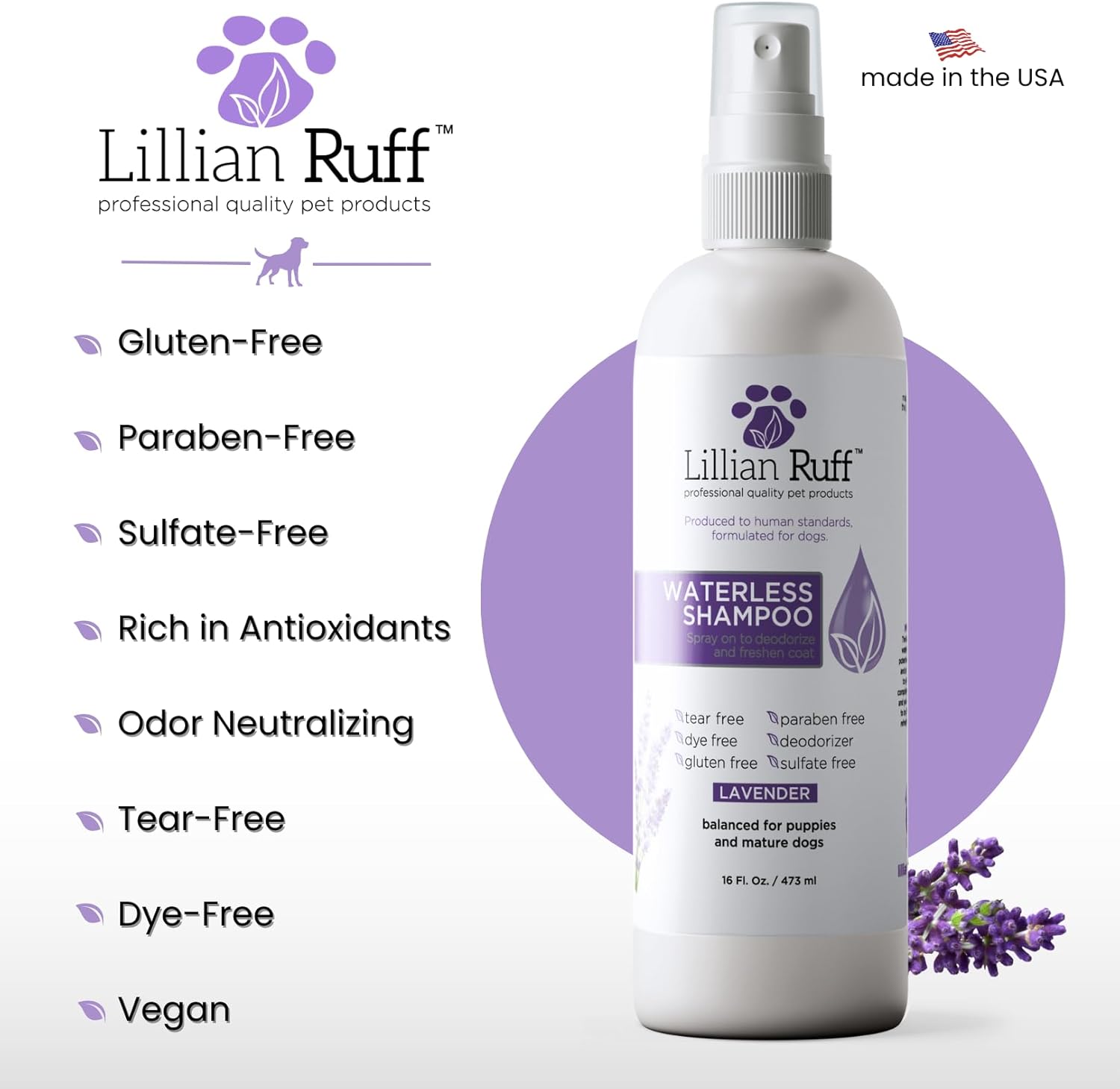 - A Brand Used by Professionals β Lillian Ruff serves professional vets and groomers all over the world thanks to our gentle formula and quality ingredients. Everything at Lillian Ruff is produced to human standards and formulated for Pets.