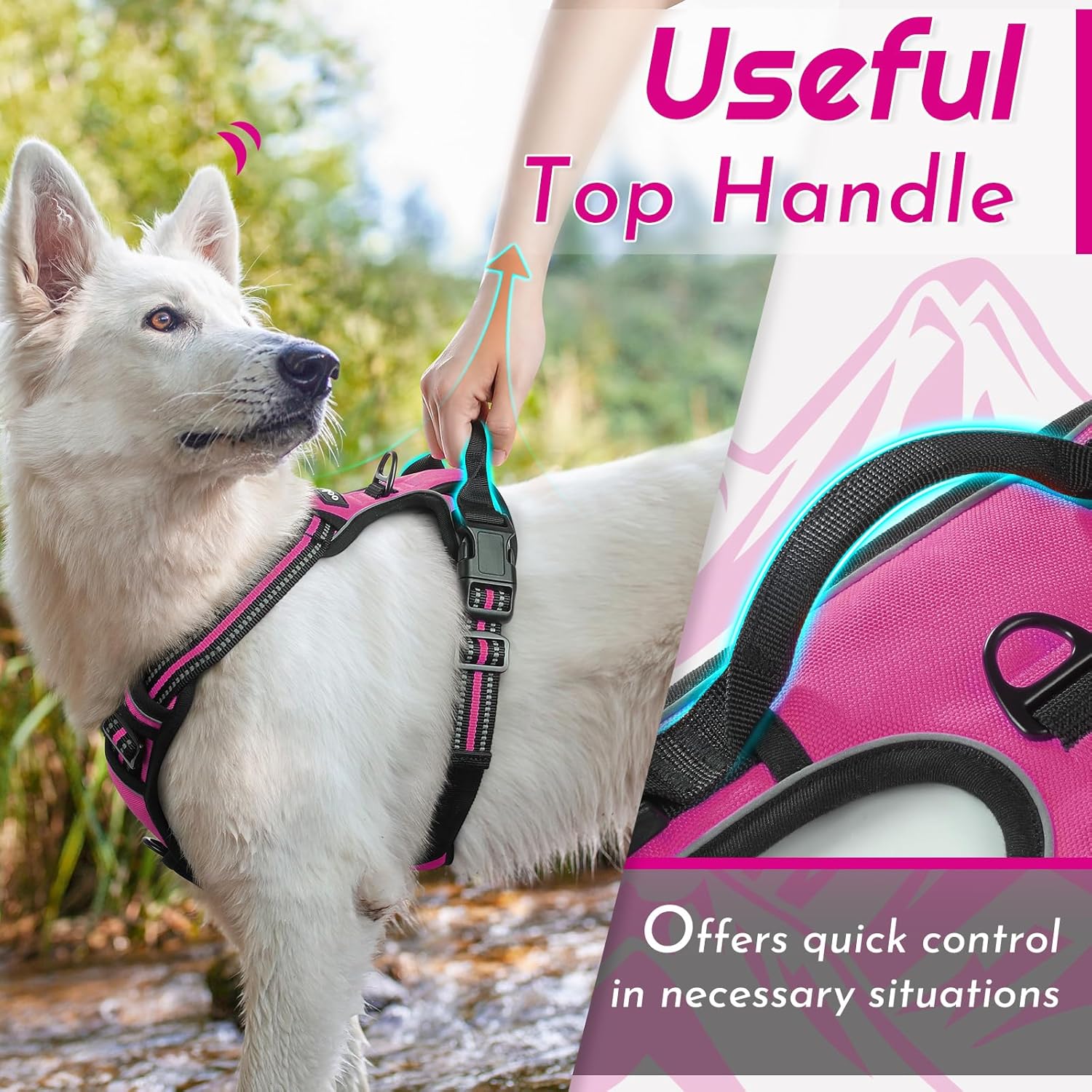 Eagloo Dog Harness for Large Dogs, No Pull Service Vest with Reflective Strips and Control Handle, Adjustable and Comfortable for Easy Walking, No Choke Pet Harness with 2 Metal Rings, Rose Red, L
