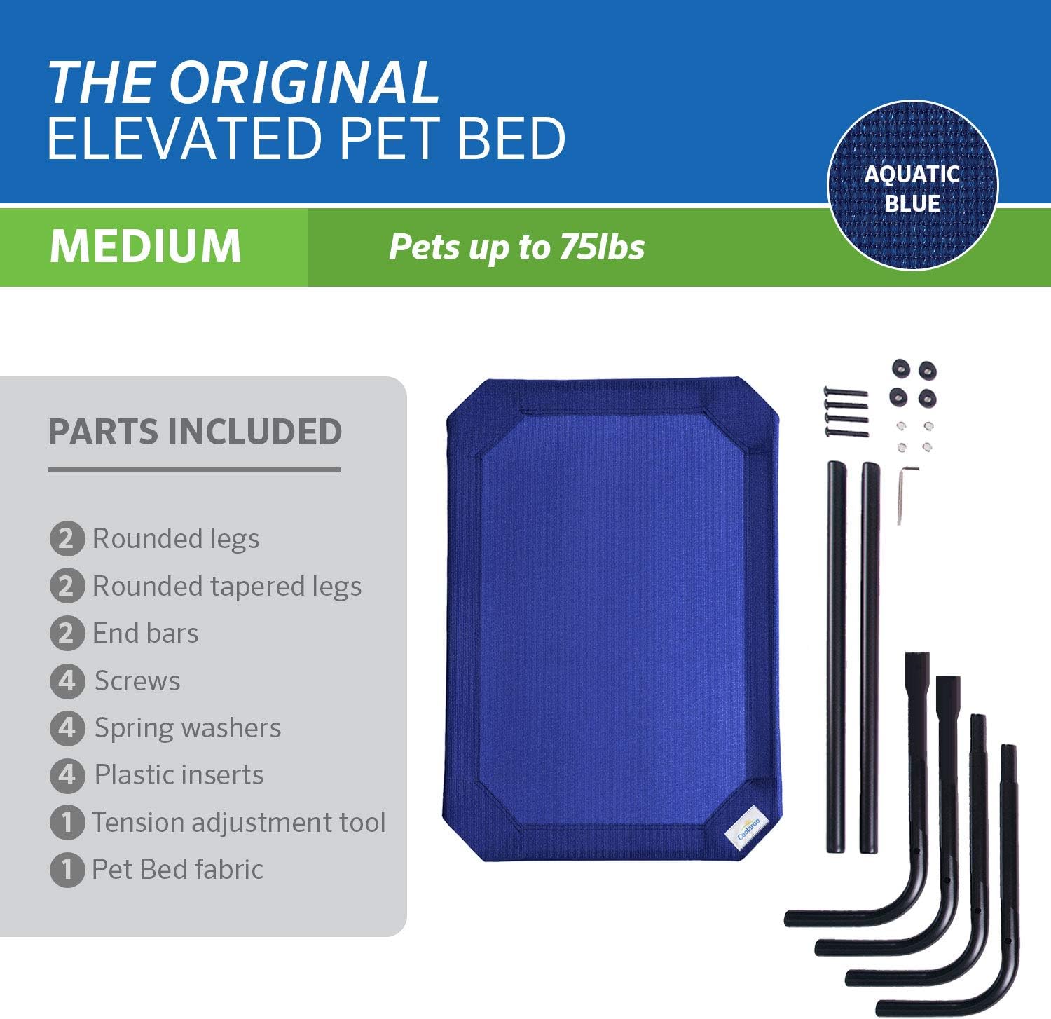 Coolaroo Original Elevated Dog Bed - Breathable Off-The-Ground Pet Bed with Cooling Fabric, Joint Relief & Moisture-Resistant Fabric, 100% Recyclable, Easy Clean, Aquatic Blue, Medium