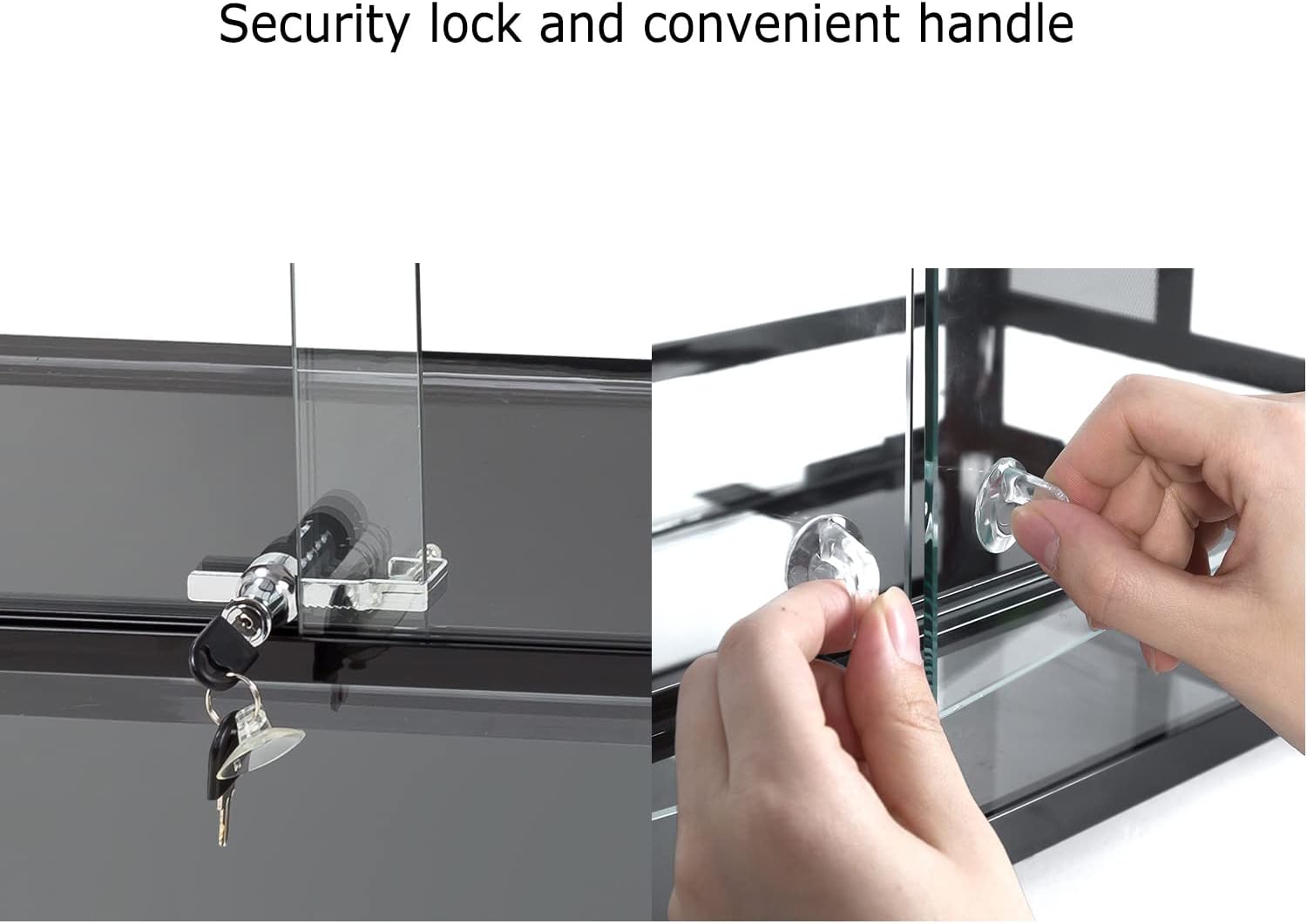 - γANTI-ESCAPEγSecurity buckle on the lid ensure the tank closed tightly, prevent your reptile amphibian chameleon pets from escaping. And the security lock avoid the doors open accidently by your kids and keep your kids safe.