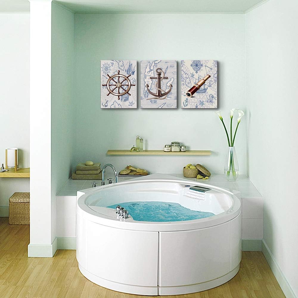 ocean theme steering wheel telescope ship pendant Canvas Prints bathroom Wall Art for Bedroom Wall decor Artworks Pictures wall decorations for living room,3 piece Home decor kitchen wall paintings