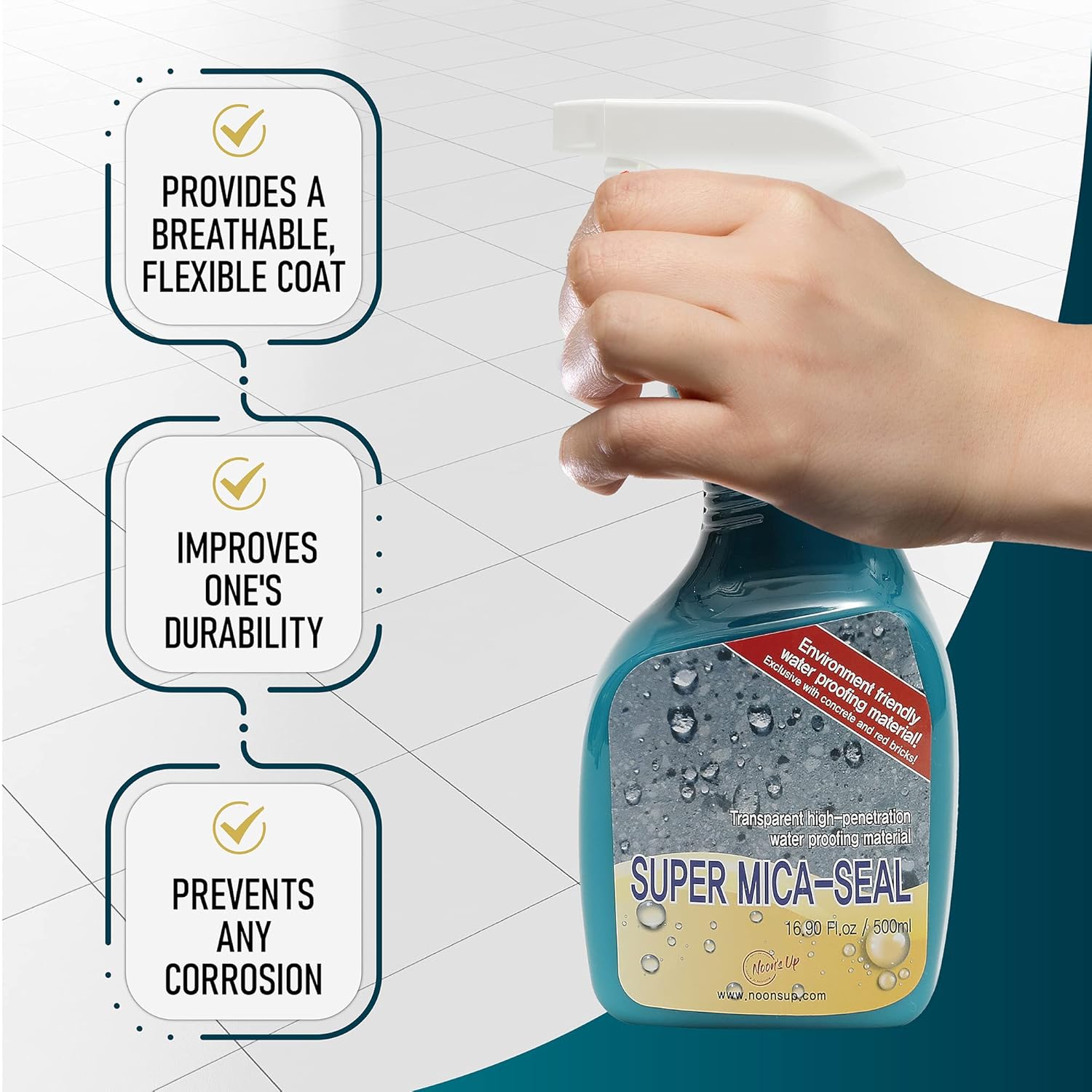 NOON's UP Super Mica-Seal Waterproof Spray | Greatly Penetrating Concrete Sealer Outdoor Waterproof Sealant | Bird Bath Sealant & Outdoor Cement Sealer | Concrete Sealer Spray (16.90 Fl Oz.)