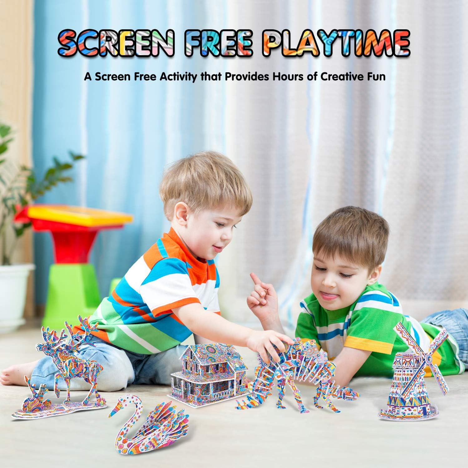- 3D Art Coloring Kit: The set includes a total of 5 different models and 12 dual tip markers. Kids can assemble and color these craft kits themselves. Hours of educational and creative fun that are exciting and hands on for kids and adults alike.