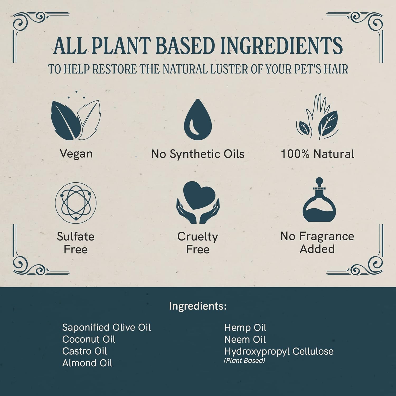 - Powered by Clean, Botanical Ingredients - Made with pet-safe ingredients like Aloe Vera, Almond Oil, Colloidal Oatmeal, and calming essential oils, this non-GMO, gluten free cat shampoo hydrates and refreshes without synthetic additives or harsh ingredients.