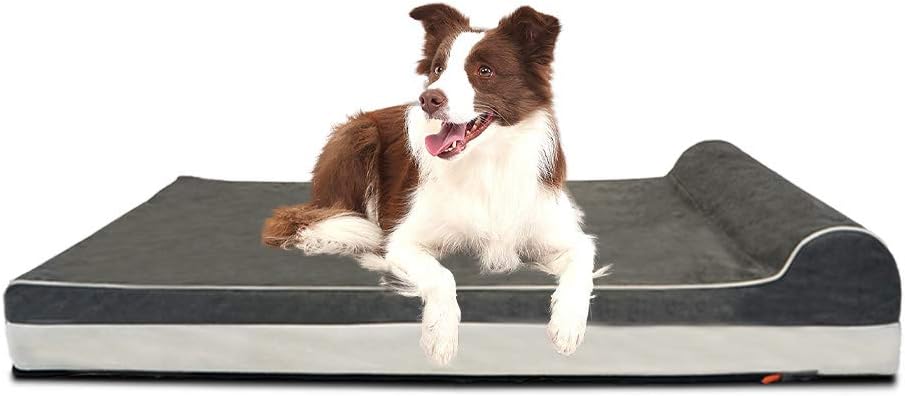 Laifug Orthopedic Memory Foam Extra Large Dog Bed with Pillow and Durable Water Proof Liner & Removable Washable Cover & Smart Design (Large (46"x28"x8"), Grey)