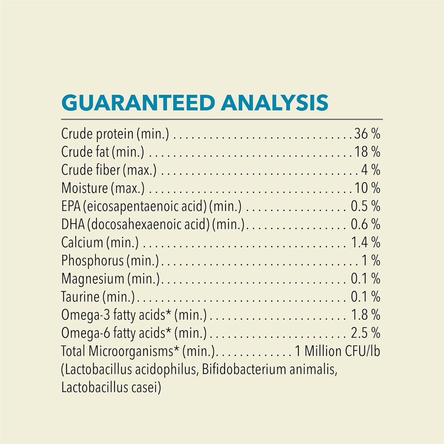 - Fiber plus a blend of probiotics helps support cat digestive health, balanced omega-3 and omega-6 fatty acids help support healthy skin and a shiny coat and taurine, EPA and DHA help maintain eye and heart health