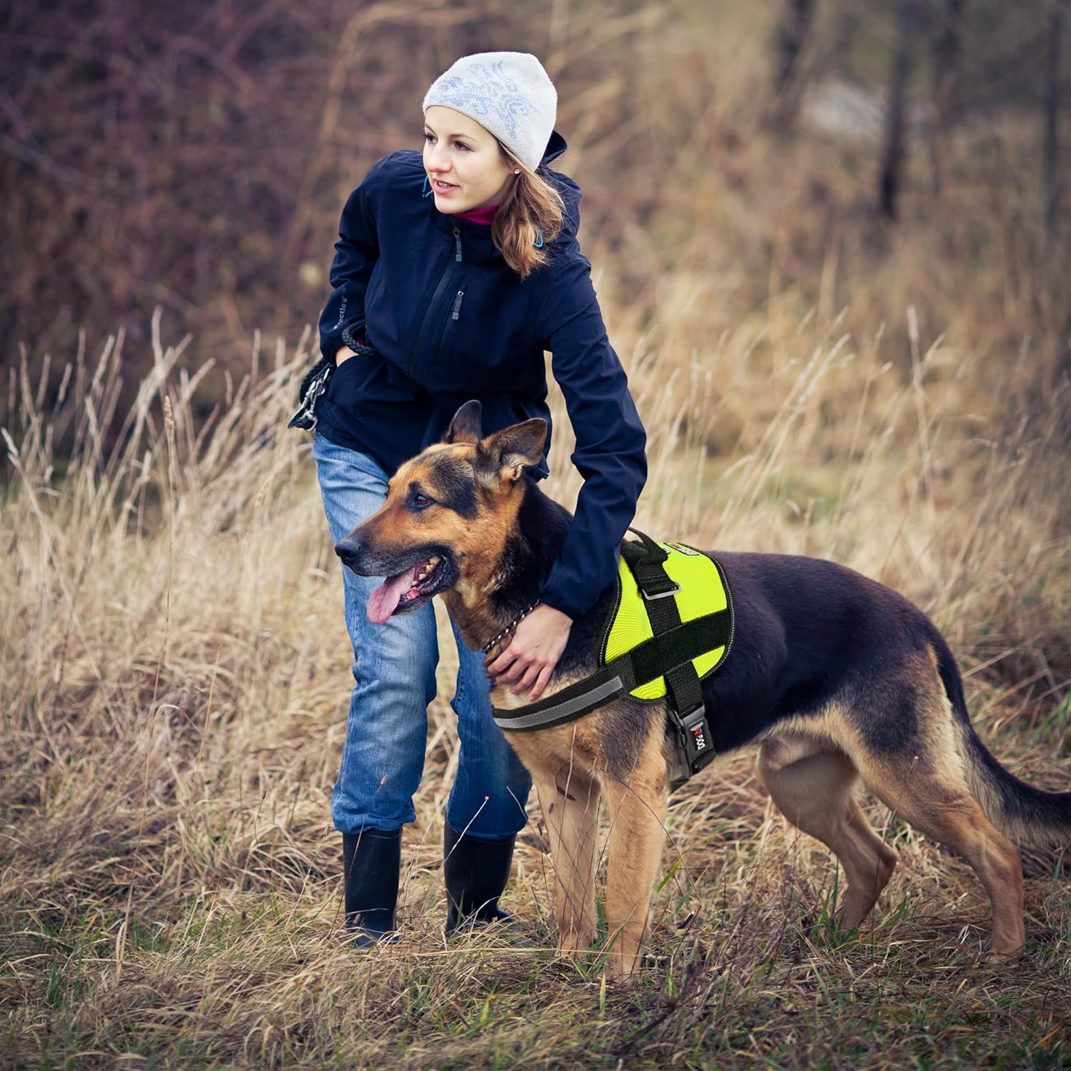 - ADJUST THE SIZE TO YOUR PETβS NEEDS Our Service Dog harness vest is fully adjustable so as to ensure a comfy yet snug fit. Forget about harnesses coming loose. Forget about seams and stitching falling apart. The quick release belly buckle facilitates use to the fullest and the top handle is great for added control and assistance.