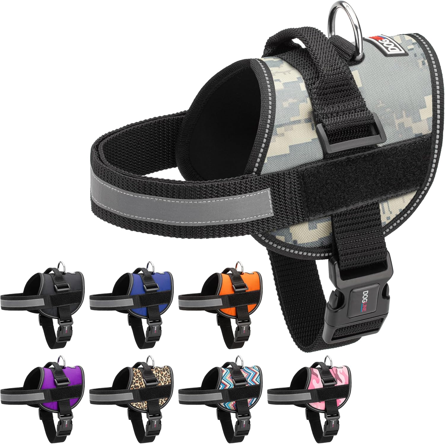 Dogline Dog Harness, Reflective No-Pull Adjustable Vest with Handle for Walking, Training, Breathable, No - Choke Harness for Small, Medium or Large Dogs Room for Patches Girth 27 to 34 in Urban Camo