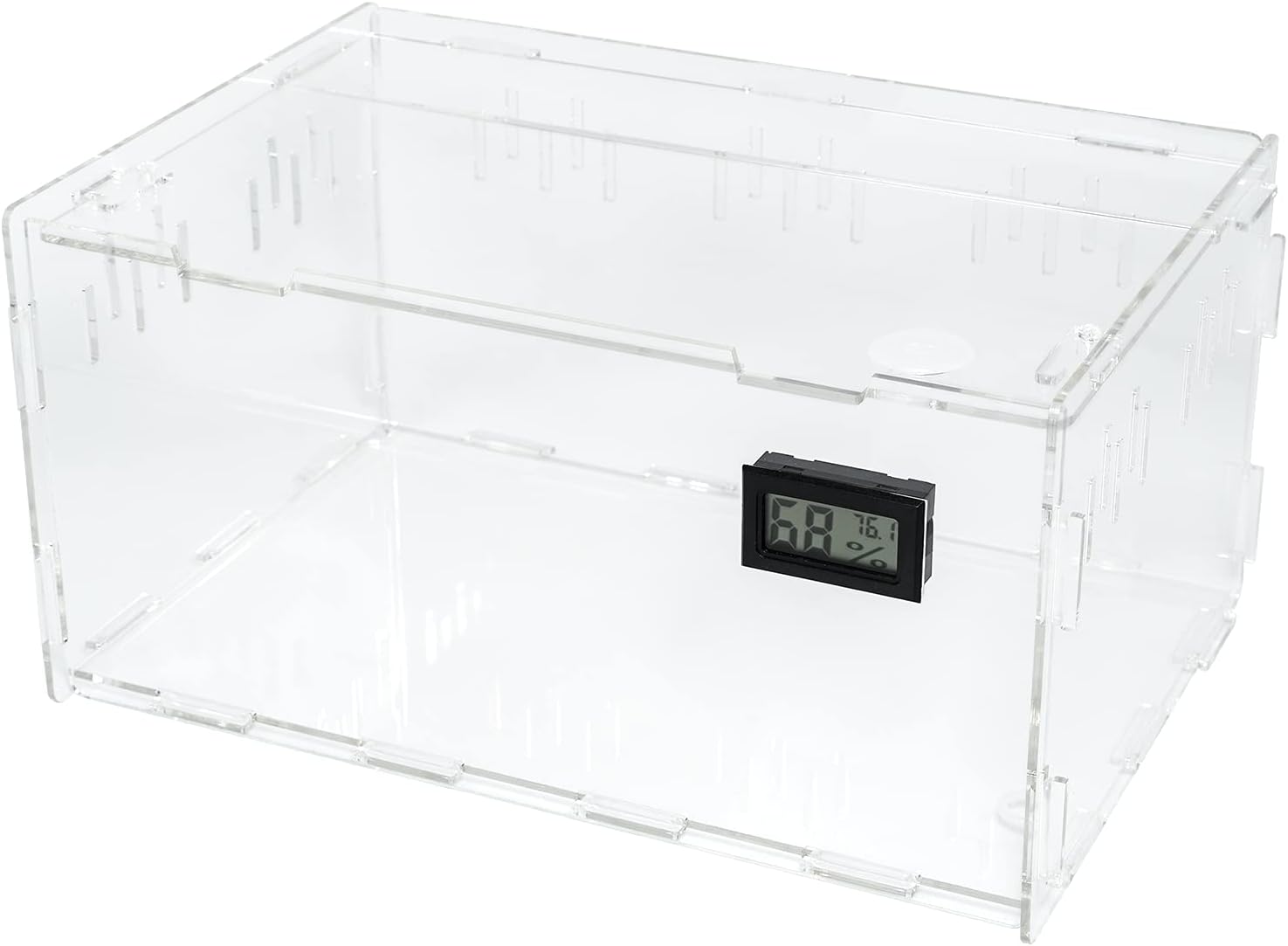 BETAZOOER Reptile Terrarium Breeding Tank Acrylic Reptile Feeding Box with Temperature Hygrometer (11.4"x7.7"x5.9")