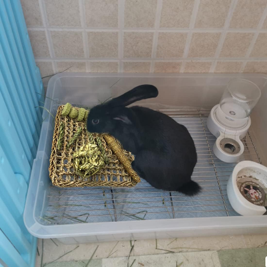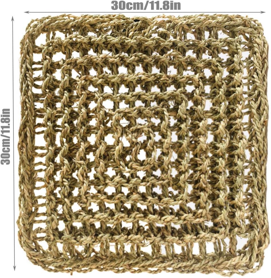 - THE SEAGRASS MAT : Our seagrass MATS are hand-woven from 100% natural seagrass. They have no odor and are friendly to rabbits.You can put a mat in a cage and use it as a foot pad to protect the rabbit's feet.You can also put it on the ground, give it to the rabbits to play with, and you can give it to the rabbits to eat.The edge length of seagrass mat is 30 cm/11.8 in