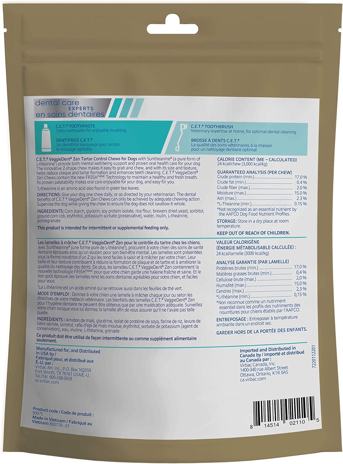 Virbac C.E.T. VEGGIEDENT Zen Tartar Control Chews for Dogs - Extra Small