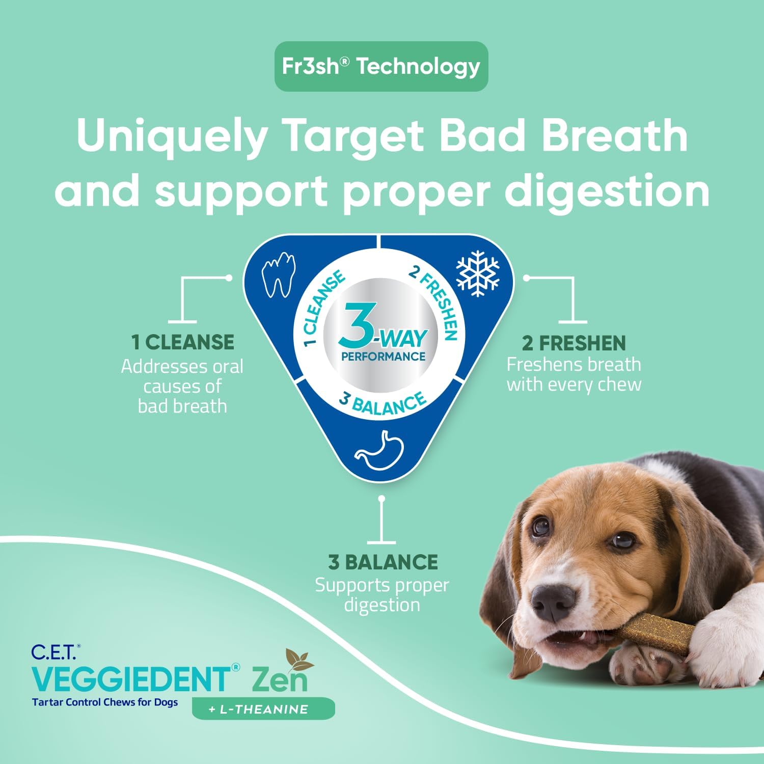 - FORMULATED WITH L-THEANINE: which is also found in green tea L-theanine used in VEGGIEDENT Zen Tartar Control Chews for Dogs comes from Suntheanine, which contains a pure form of L-theanine. Suntheanine is a registered trademark of Taiyo International, Inc.