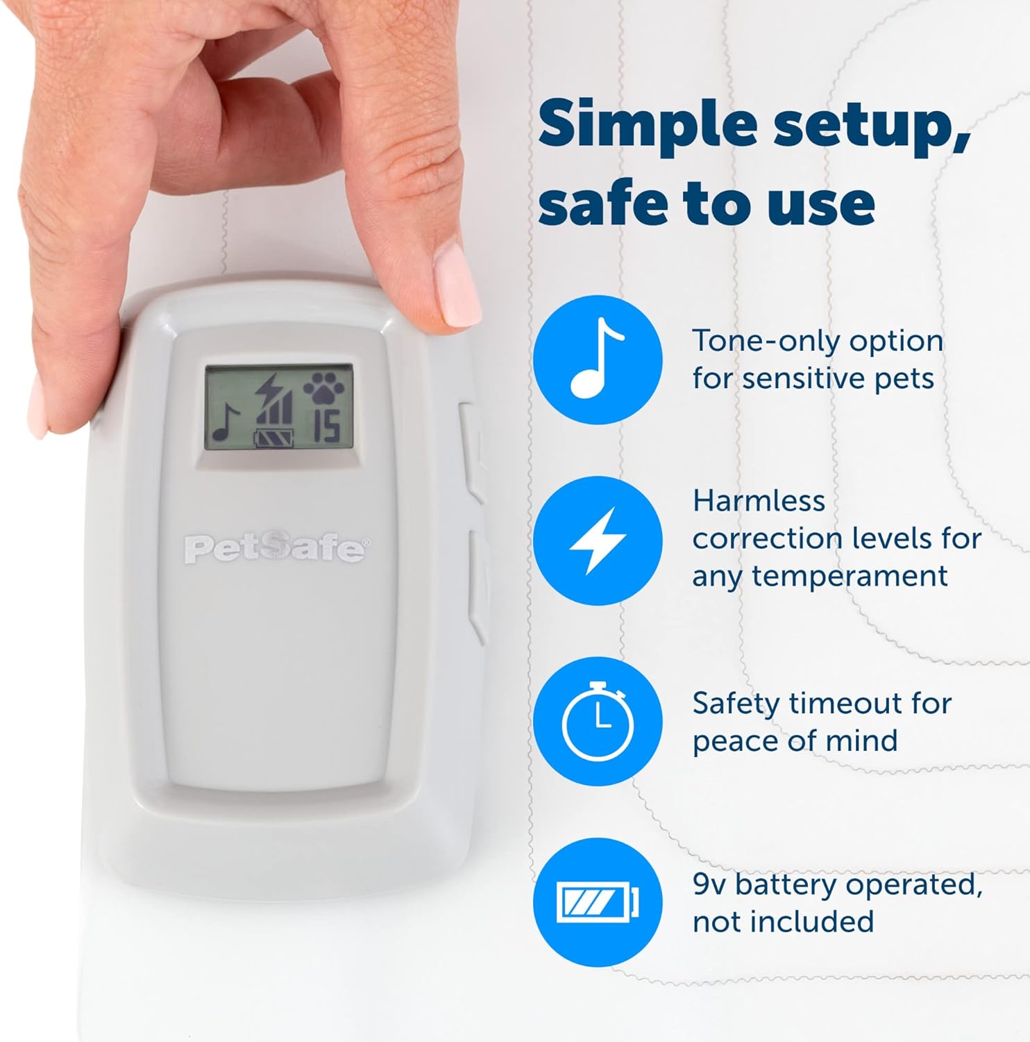 - Easy to Use: Battery-operated controller attaches to training mat and features an LCD display that shows battery level, correction level and a counter so you can see how many times your pet steps on the mat; 9-volt battery required (not included)