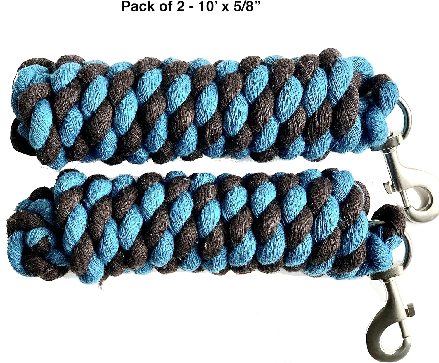 - TWIN PACK & AVAILABLE IN MULTIPLE COLORS - Our 10 feet cotton lead rope comes in pack of 2 and are available in 4 combo colors: Turquoise -Brown, Sky Blue – Black, Hunter Green -Tan and Navy - Burgundy.