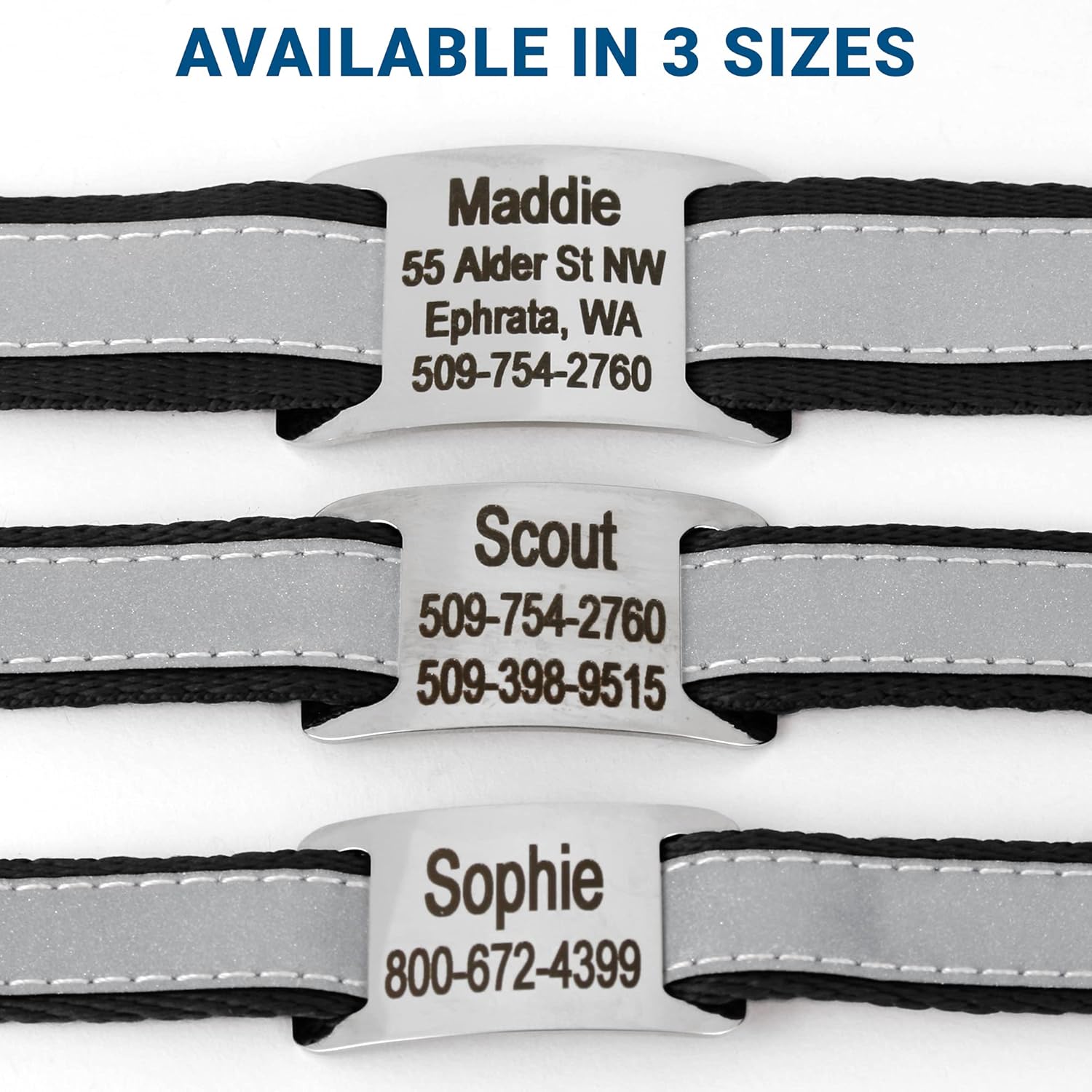 GoTags Reflective Personalized Dog Collar with Nameplate, Adjustable Dog Collar with Custom Engraved Steel Slide On Pet ID Tag, Silent, No Noise Dog Tag for Large Medium or Small (Black, Medium)