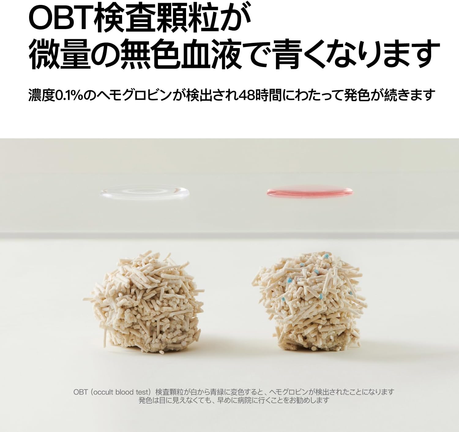 - 【Attention】 1.Direct exposure to hard light or friction with metal would invalid the detection function of the occult blood test particles. Please avoid such situations.2.Mineral substance contained in bentonite would affect the detection performance. Do NOT mix the product with other cat litter. 3.The vacuum design is only to facilitate its transportation and storage, and air leakage does NOT compromise the use. If you DO mind, please contact us.