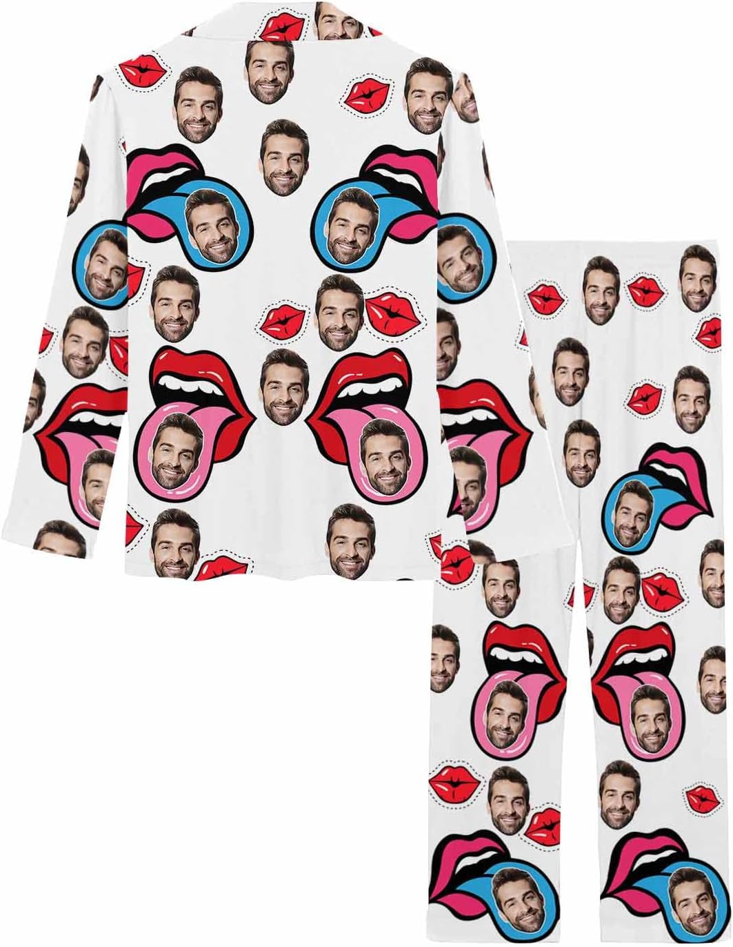MyPupSocks Custom Face Pajamas for Women Set, Personalized Photo Long Sleepwear XS-XXL